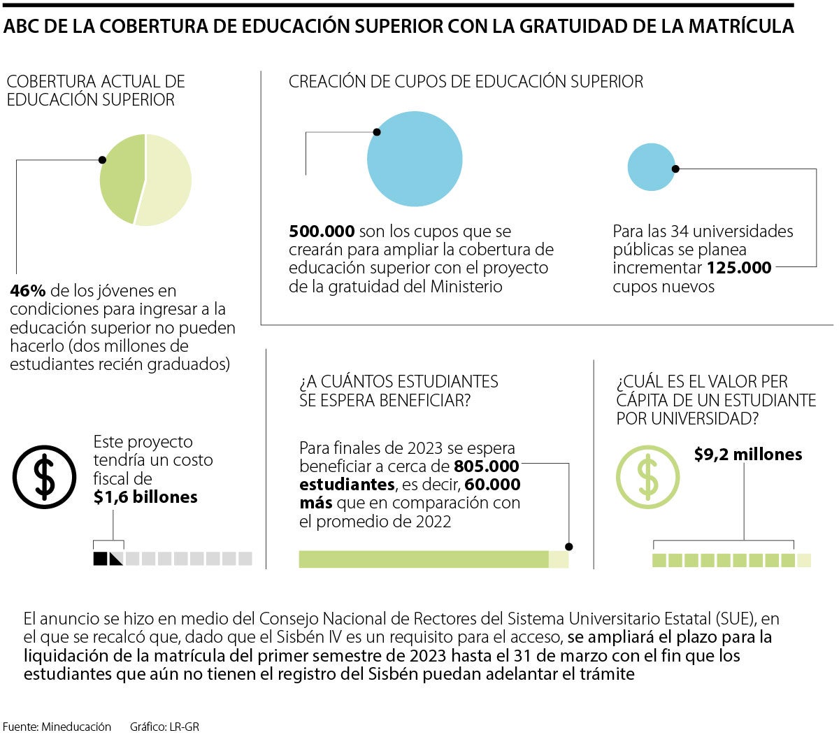 Sobre el tema, se recalcó también que dado que el Sisbén IV es un requisito para el acceso, se ampliará el plazo para la liquidación de la matrícula del primer semestre de 2023 hasta el 31 de marzo, para que los estudiantes que aún no tienen el registro del Sisbén, puedan adelantar el trámite.