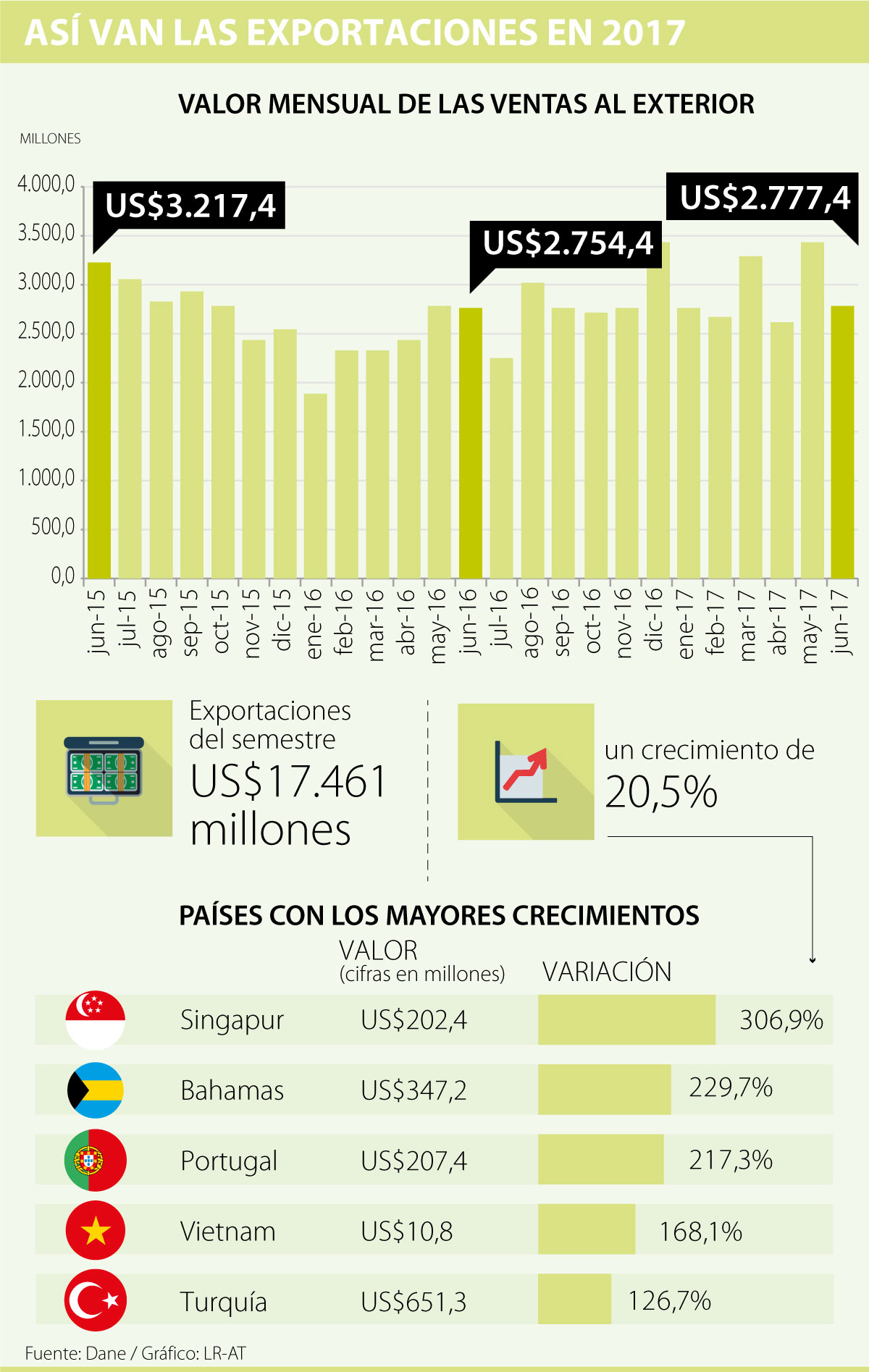 De acuerdo con el Departamento Administrativo Nacional de Estadística (Dane), entre enero y junio se vendieron US$17.461 millones.