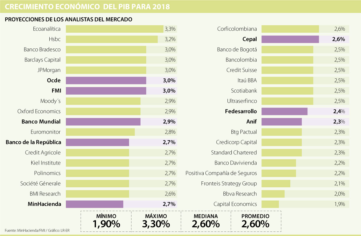 Asimismo, los analistas esperan que el país se vea beneficiado por la mejoría de los precios del petróleo y, en general, de un mejor entorno global, que tendría un efecto positivo en las exportaciones, las cuales cerraron 2017 con un repunte de 19%.