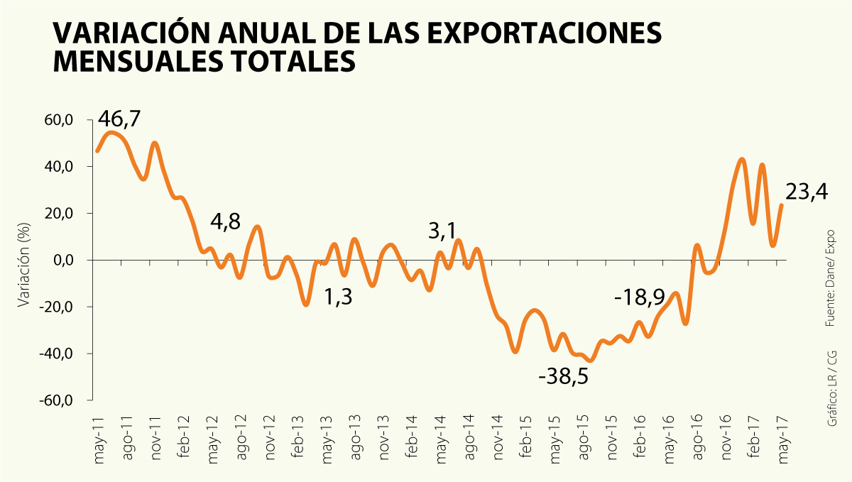 Durante los cinco meses que van de este año, las exportaciones retomaron su senda positiva, al menos en la cantidad de dólares exportados, si se tiene en cuenta que en mayo, las ventas al exterior crecieron 23,4%.