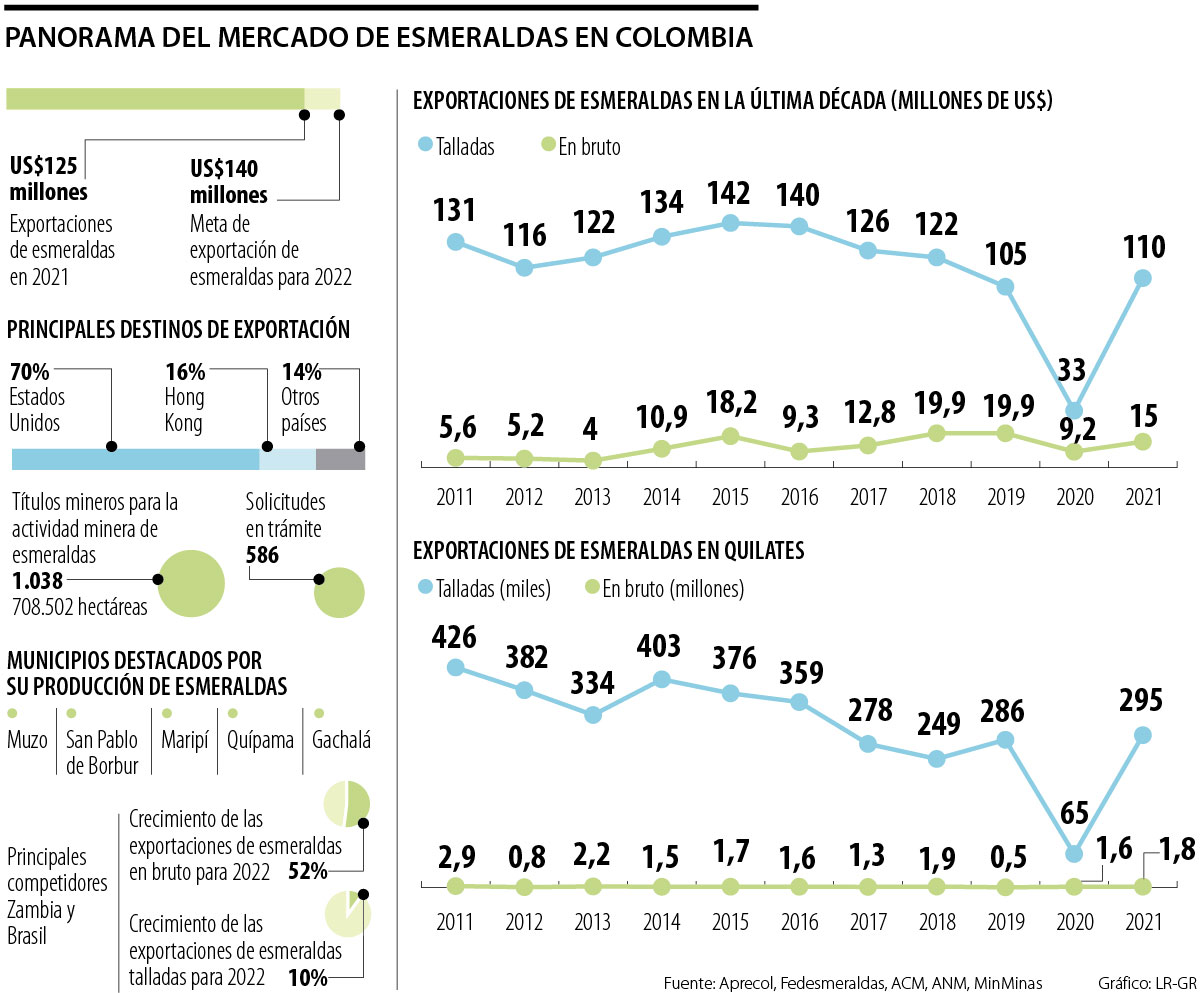 Así, “2022 debería ser un buen año para el sector esmeraldífero en tanto las minas ya han logrado retornar a sus niveles de explotación que tenían antes de la pandemia”, aclaró.