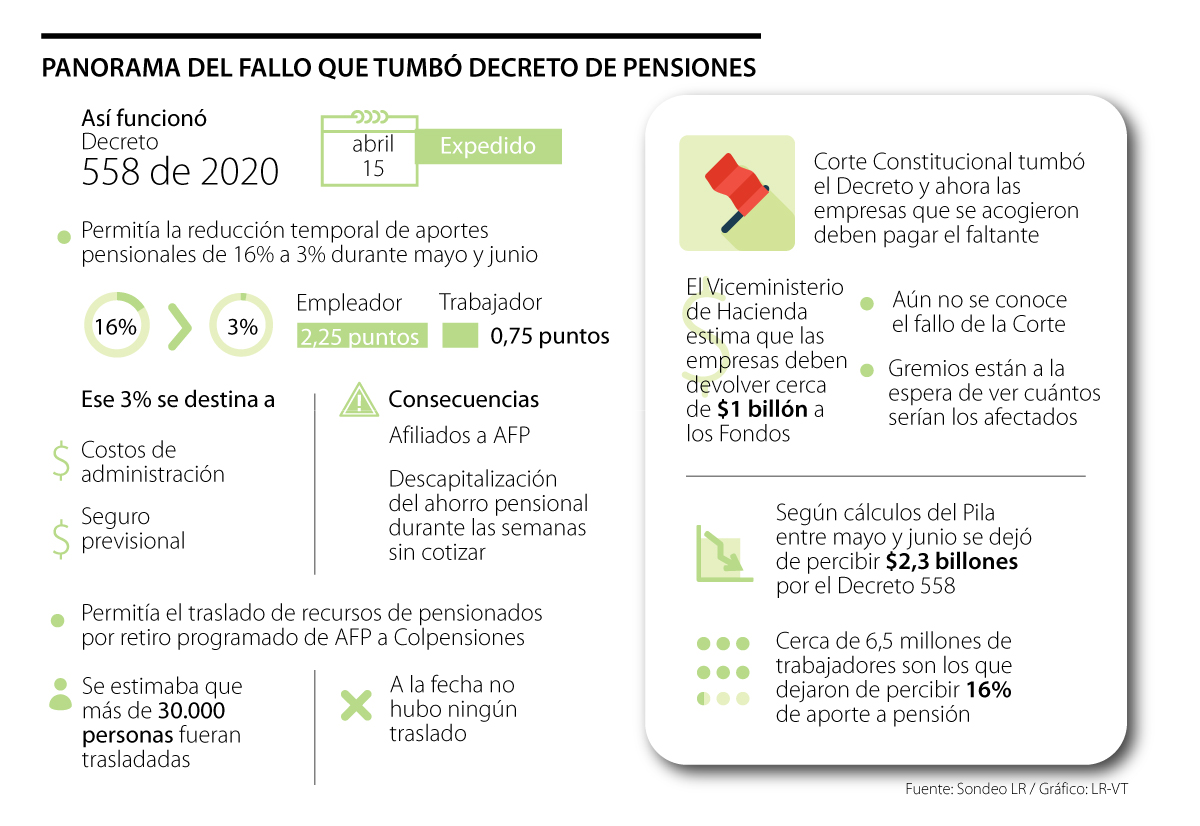 En concreto, los empresarios tienen incertidumbre porque sin conocer el fallo, aún no hay un mecanismo para devolver el aporte a pensión de esos 6,5 millones de trabajadores, pues las empresas atraviesan por un momento en el que no hay recursos ni para cubrir la nómina.