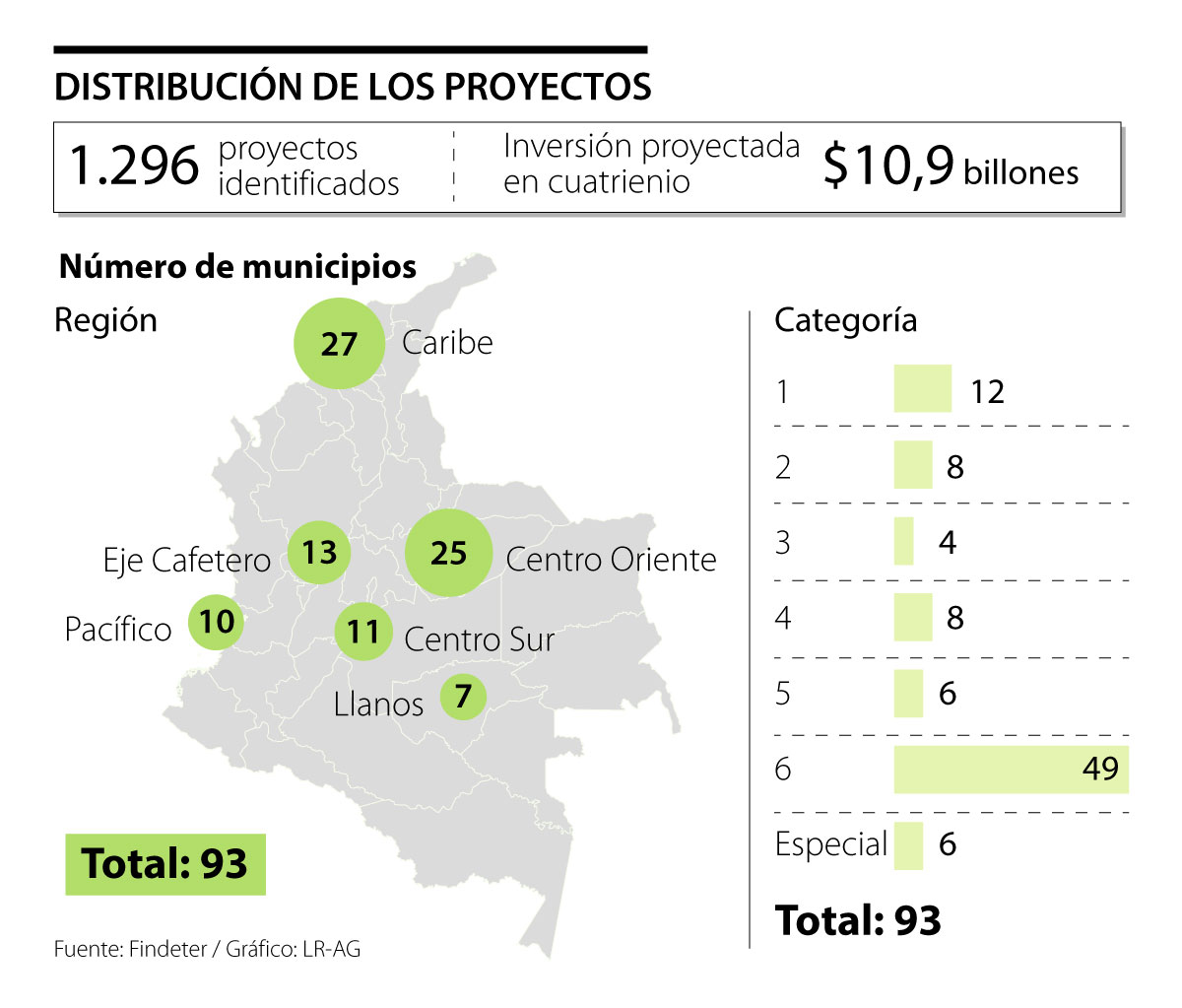 La mencionada propuesta llama la atención teniendo en cuenta que de los 1.101 municipios que existen en el país, 1.035 pertenecer a la categoría 6, es decir que 88% del total tiene menos de 10.000 habitantes e ingresos corrientes iguales o menores a los 15.000 salarios mínimos vigentes ($12.421 millones). Y son estos territorios los que, según Findeter, presentan mayores necesidades pero, al mismo tiempo, potencial para ejecutar proyectos.