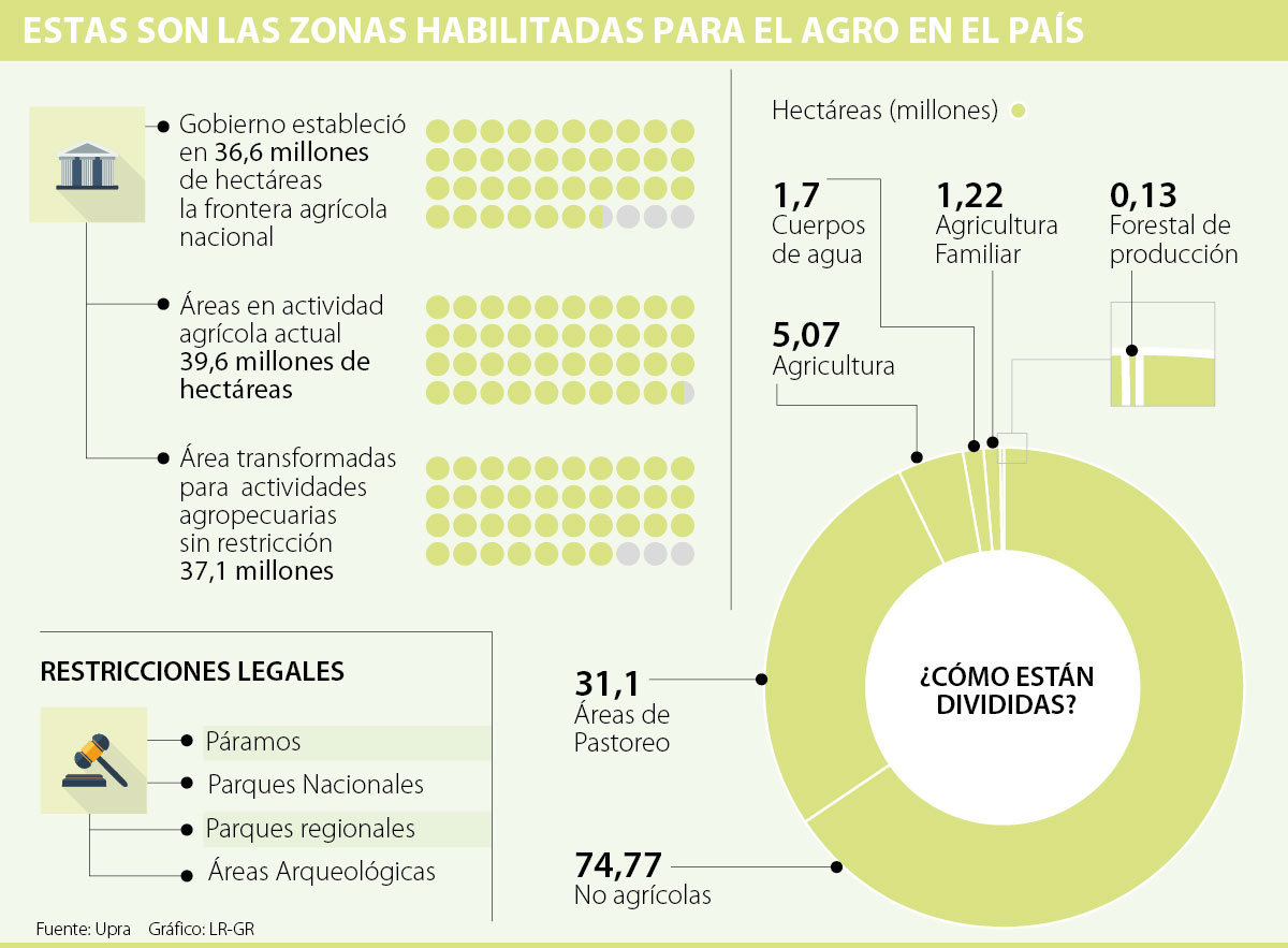 La tarea de esta delimitación quedó en manos de la Unidad de Planificación Rural y Agropecuaria (Upra), entidad que puso 36,68 millones de hectáreas dentro de ese límite, aunque hoy, esas tareas son desarrolladas en 39,68 millones de hectáreas.