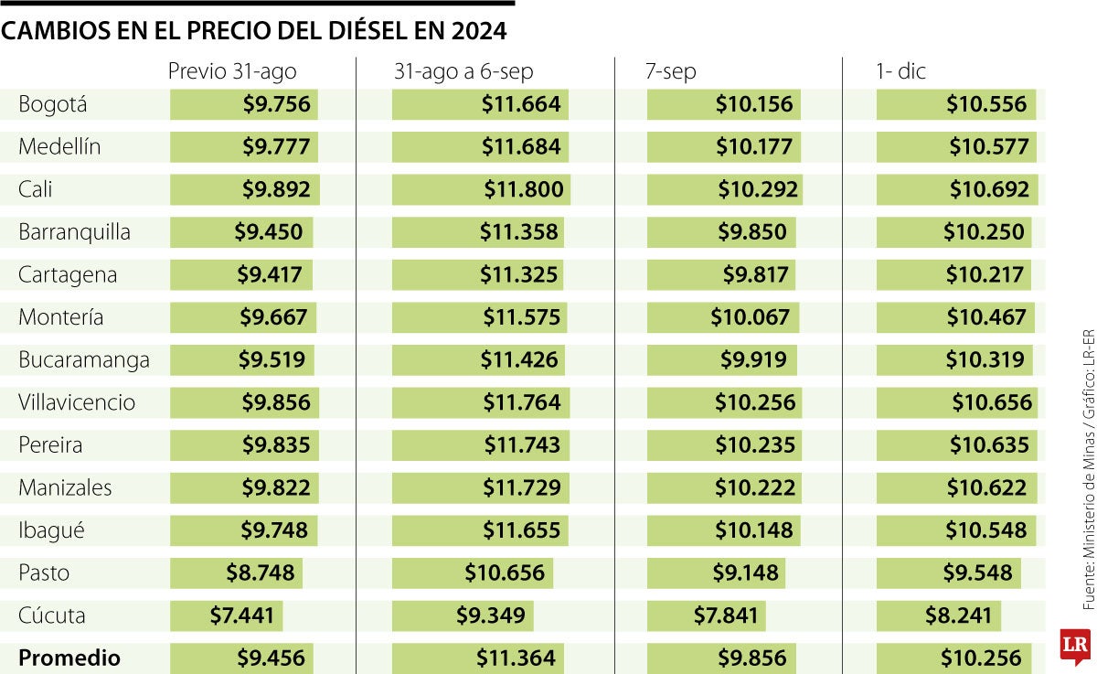 “El incremento de $400 por galón permitirá reducir en $62.000 millones por mes los subsidios al diesel, los cuales a precio de noviembre están en cerca de $443.000 millones por mes y se reducirían a $380.000 millones por mes; esto es un buen avance en la eliminación de los subsidios”, detalló Julio César Vera, presidente de XUA Energy.