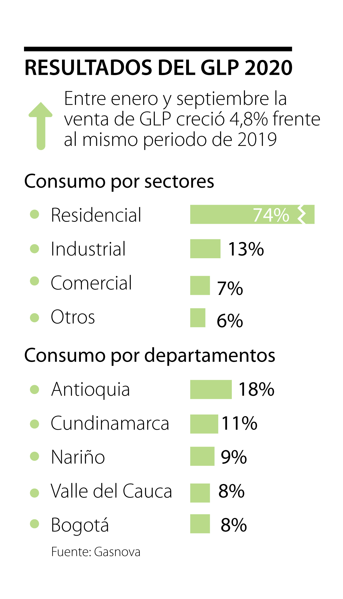 La Asociación Colombiana de GLP (Gasnova) dio a conocer el reporte más actualizado de la situación actual del gas licuado de petróleo (GLP), en el que se destacó que, entre enero y septiembre de este año, hubo un repunte en las ventas de 4,8%, frente al mismo periodo de 2019.