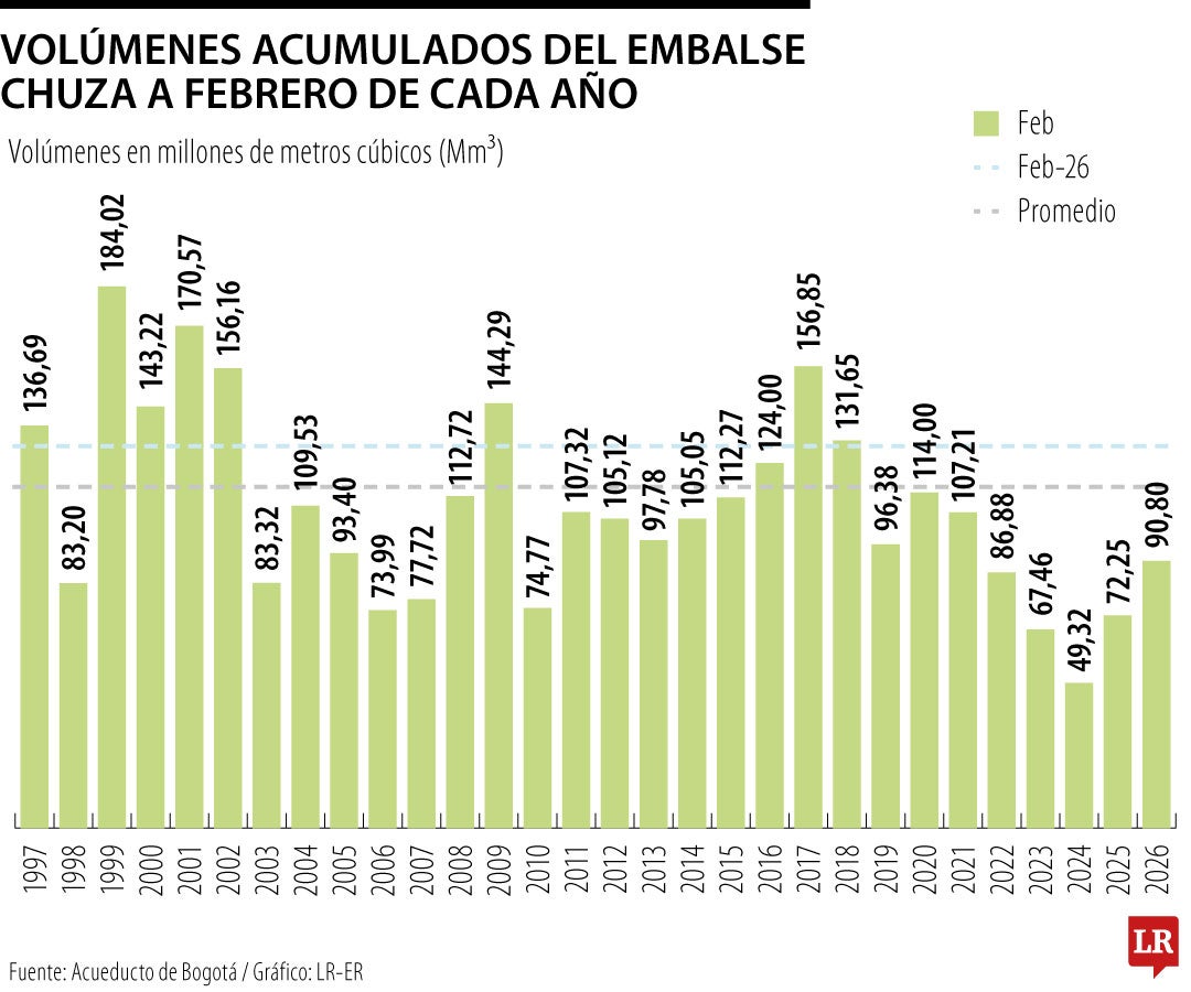 "El embalse de Chuza tiene un régimen de lluvias unimodal: el año hidrológico inicia en abril de cada año y va hasta marzo del siguiente año, siendo el lapso de diciembre a marzo la “temporada seca” en el páramo de Chingaza", detalló.