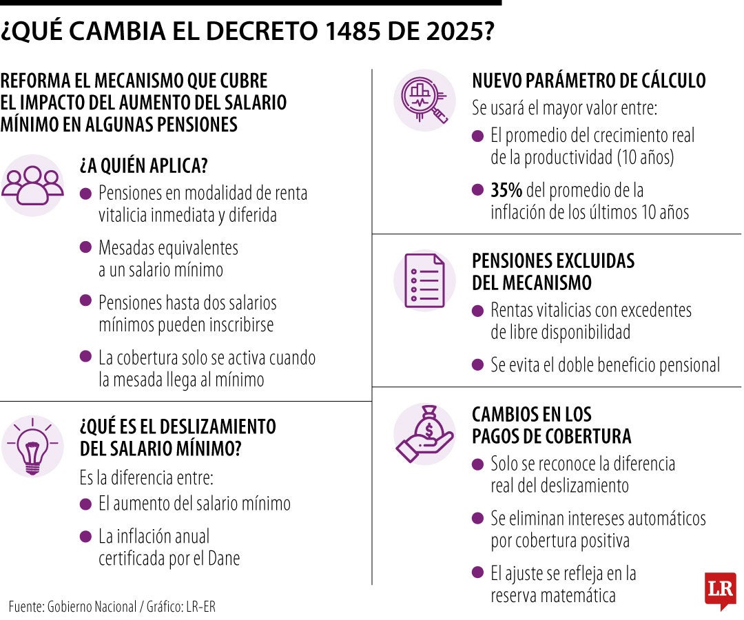 El Gobierno Nacional expidió el Decreto 1485 con el cual reformó de manera integral el mecanismo de cobertura del deslizamiento del salario mínimo en el sistema pensional, específicamente para las pensiones reconocidas bajo la modalidad de renta vitalicia inmediata y renta vitalicia diferida.