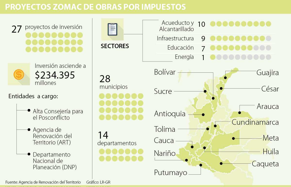 El mecanismo, que puede ser utilizado tanto por personas jurídicas contribuyentes del impuesto sobre la renta cuyos ingresos brutos sean iguales o superiores a 33.610 UVT ($1.114 millones en 2018), se fijó con la Reforma Tributaria de 2016 y busca promover la ejecución de proyectos de trascendencia social en las diferentes regiones golpeadas por el conflicto armado.