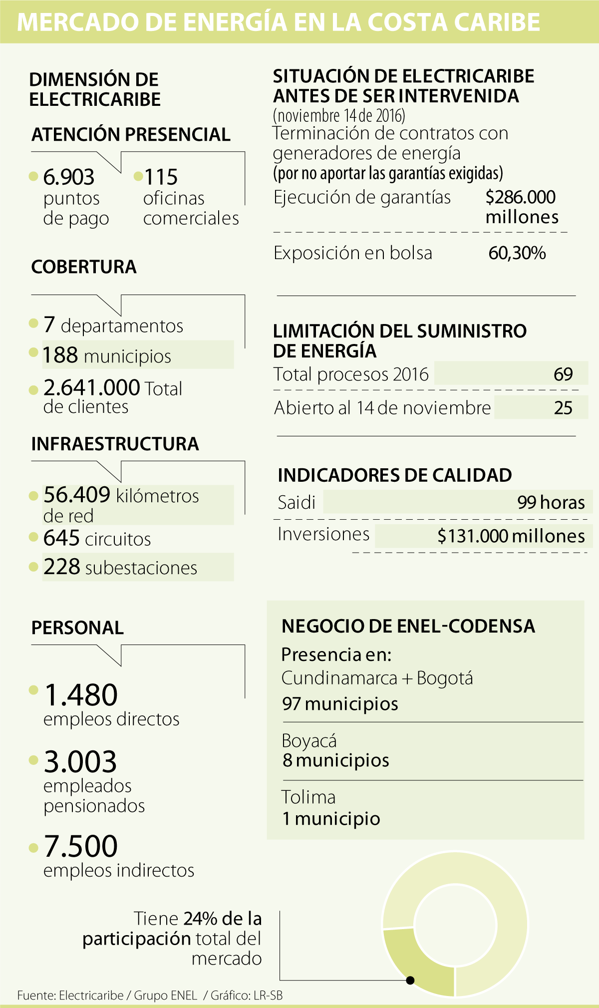 De hecho, si Enel Américas se queda con la comecializadora, agregaría a su portafolio cerca de 23% del mercado, por lo que pasaría los límites legales de participación en distribución y comercialización de energía, que es 25%, ya que como propietario de Codensa, actualmente tiene 24% de participación en el mercado.