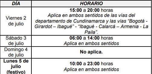 “En aras de agilizar la movilidad en este puente festivo de San Pedro y San Pablo, hemos establecido algunas restricciones con el fin de evitar congestiones en los corredores viales del país. Es importante conocerlos, ya que las autoridades estarán presentes en puntos estratégicos verificando el correcto cumplimiento de la norma”, afirmó la Ministra de Transporte Ángela María Orozco.