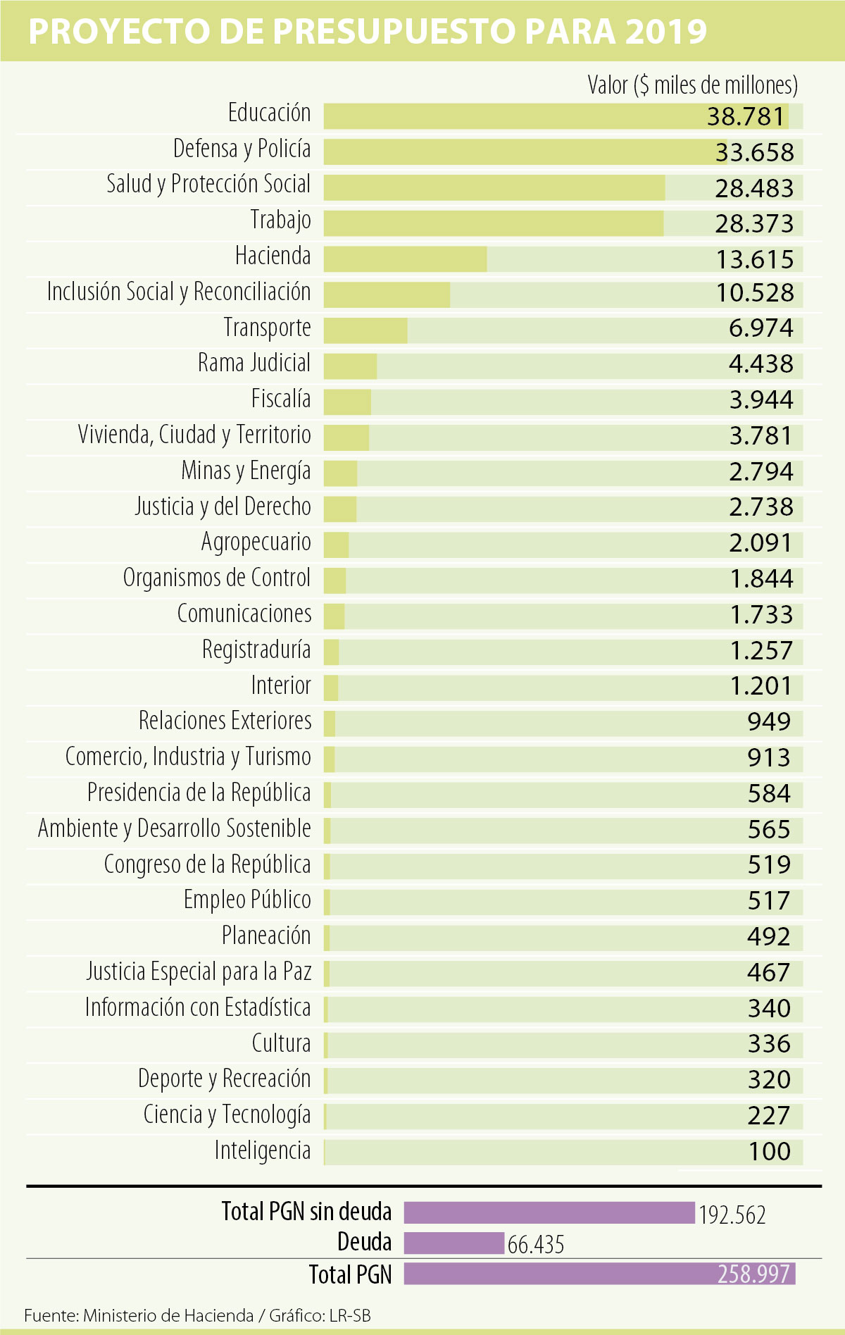 Para justificar la propuesta de aumentar la base de productos por los que se paga el IVA, el ministro Carrasquilla explicó que al presupuesto le hacen falta recursos por $25 billones. En un informe, el Observatorio Fiscal de la Universidad Javeriana demostró que, por ejemplo, en Inclusión Social se requieren $1,9 billones más, (de los cuales $1,6 billones son para Familias en Acción). En el sector de Presidencia se necesita $1 billón para el fondo de reparación de víctimas y para cerrar los grandes faltantes, finalmente $1,2 billones para los subsidios eléctricos y de gas.