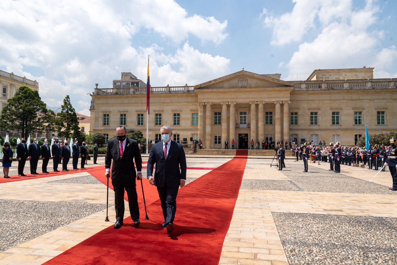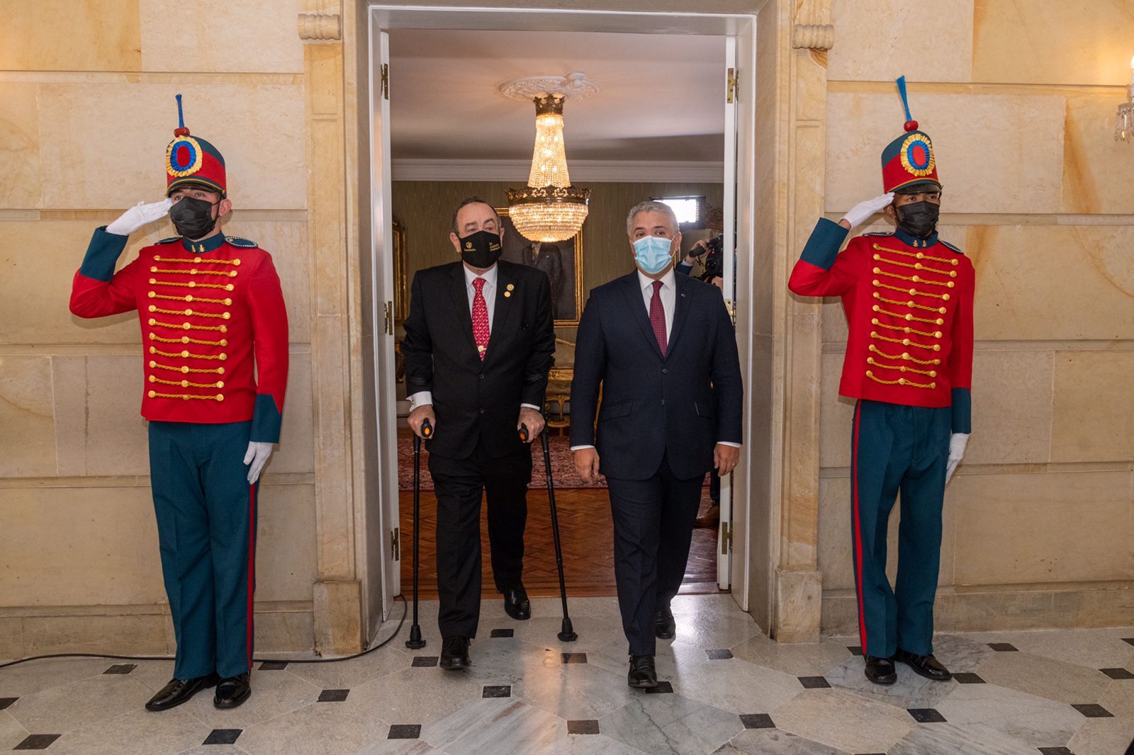 Este jueves 14 de octubre el presidente Iván Duque recibió en la Casa de Nariño al presidente de de Guatemala, Alejandro Giammattei, con el objetivo de reforzar lazos históricos de amistad entre los dos países y consolidar relaciones binacionales en términos comerciales, culturales y de inversión.