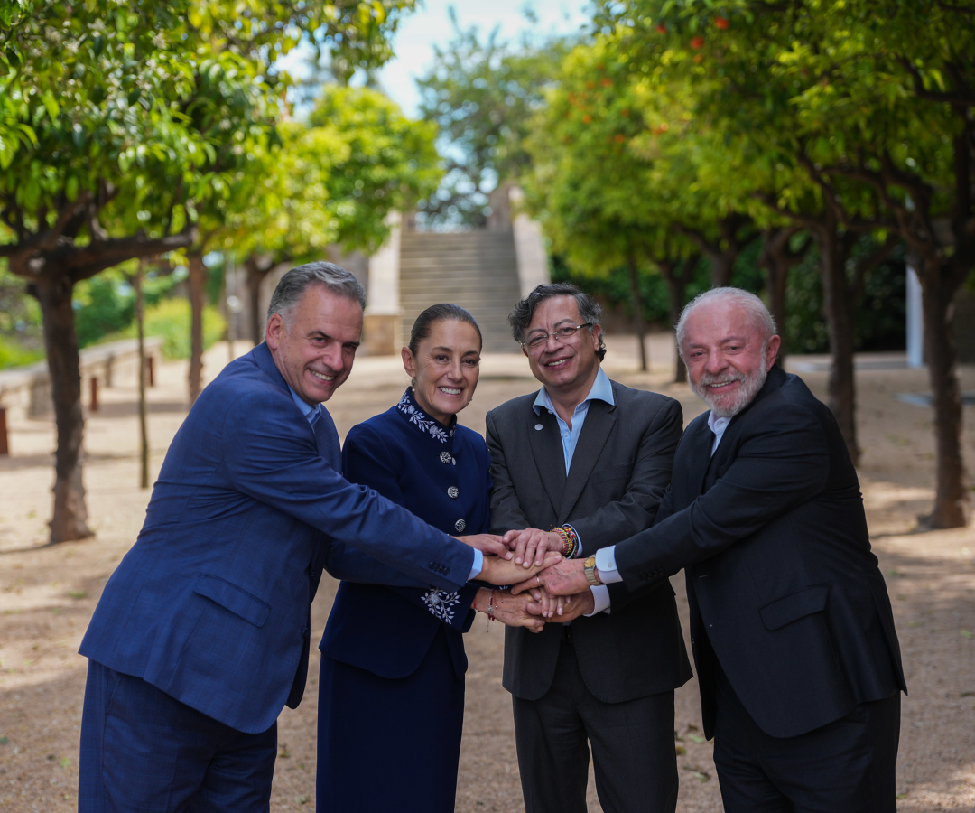Yamandú Orsi, presidente de Uruguay; Claudia Sheinbaum, presidente de México; Gustavo Petro, presidente de la República; y Lula da Silva, presidente de Brasil.