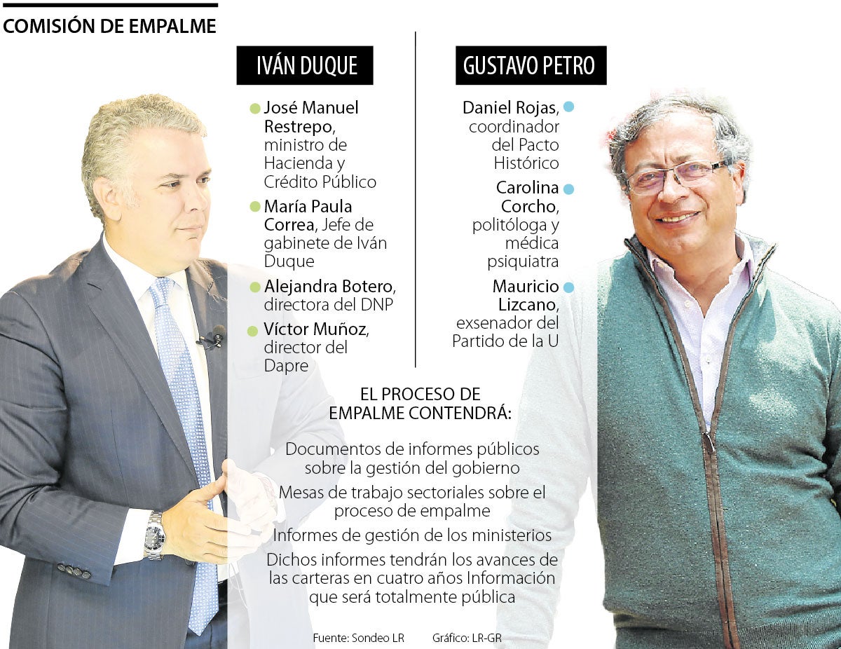 Tanto el equipo del Gobierno saliente como el entrante tuvieron un primer acercamiento el día de ayer en la Casa de Nariño. Luego de las seis de la tarde, Iván Duque y Gustavo Petro sostuvieron la que fue la primera reunión entre los Gobiernos. Duque, por su parte, designó a Restrepo como el funcionario que liderará la transición y el proceso de empalme. Alejandra Botero, directora del Departamento Nacional de Planeación, y María Paula Correa, jefe de gabinete del actual mandatario hacen parte de la comisión. Víctor Muñoz, director del Dapre, también fue incluido en el proceso.