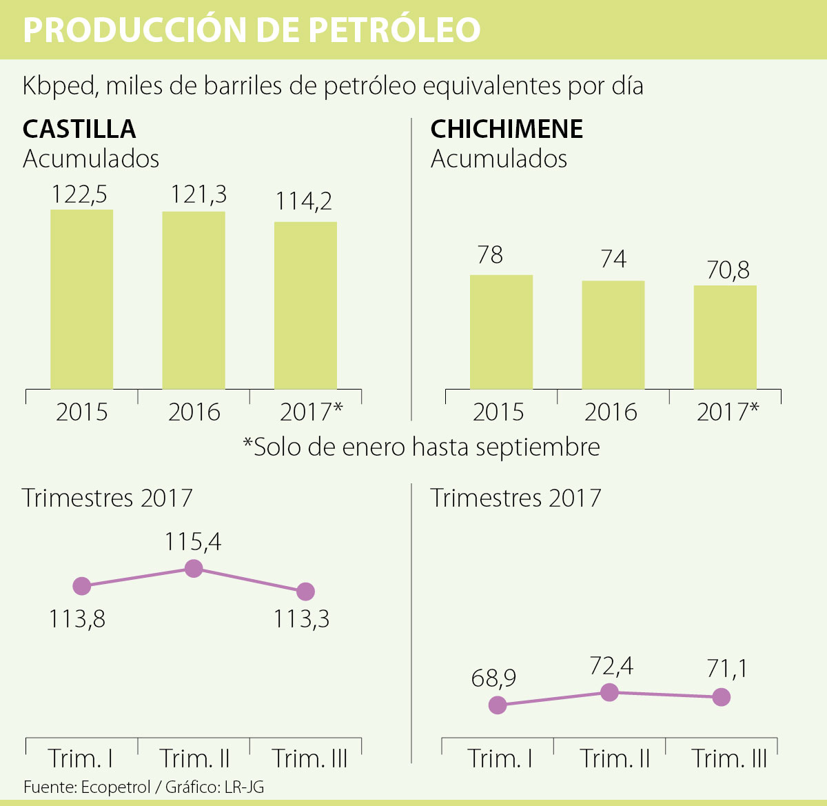 Los campos afectados por este plan de contingencia son Castilla, donde en promedio, entre enero y septiembre del año pasado se produjeron 114.200 barriles de petróleo equivalentes diarios, y Chichimene, campo en el que los primeros nueve meses de 2017 se extrajeron en promedio 70.800 barriles de petróleo equivalentes por día.
