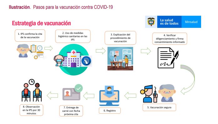 Respecto a como será el proceso Ruiz dijo que quienes aplicarán la vacuna serán las EPS y las IPS y esto lo harán con cita previa. Cada paciente tendrá un carnet de vacunación y deberá permanecer en observación durante 30 minutos luego de aplicada la vacuna.