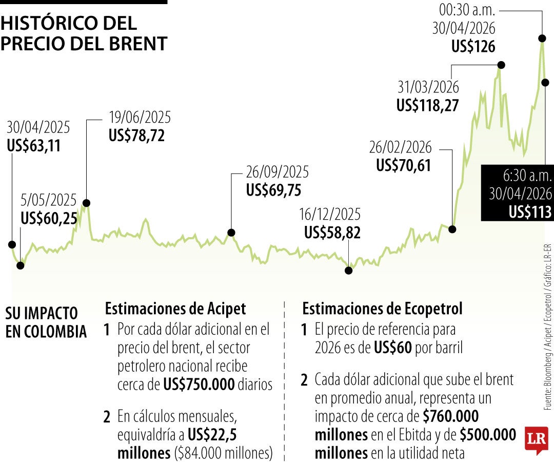 Según estimaciones de Acipet, por cada dólar adicional en el precio del brent, el sector petrolero nacional recibe cerca de US$750.000 diarios