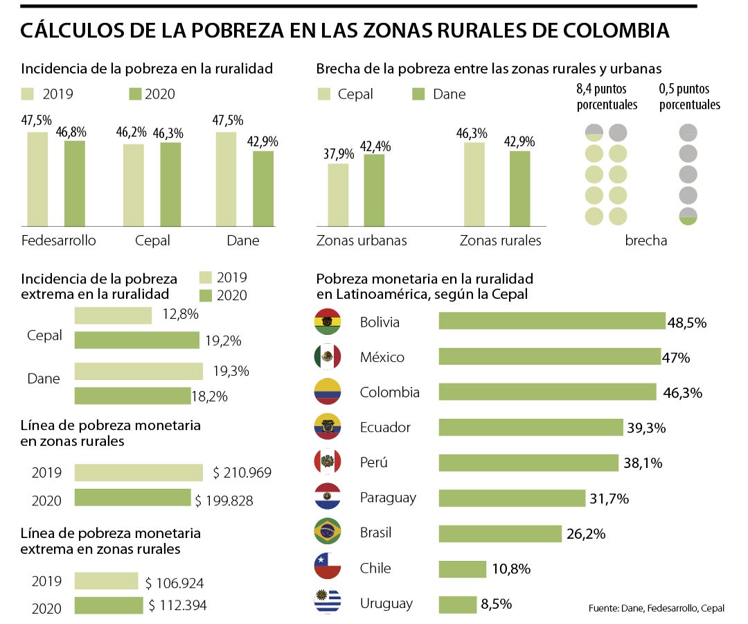 De acuerdo con las cifras reveladas por el Departamento, durante este año, la incidencia de la pobreza monetaria era de 42,9%, presentando reducción de 4,6 puntos porcentuales frente a 2019. Este dato, no obstante, fue revisado por Fedesarrollo y la Cepal quienes consideran que este fue mayor, de 46,8% y 46,3% respectivamente.