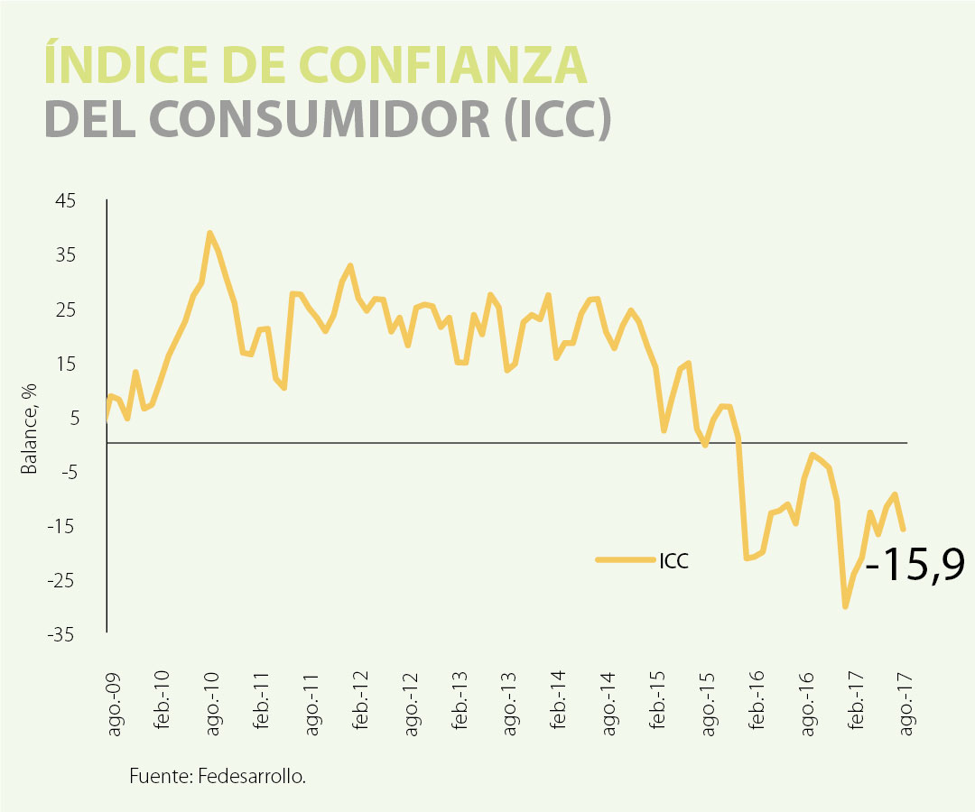 Según el balance de Fedesarrollo "la reducción en la confianza de los consumidores en agosto frente a julio se debe a una disminución en la percepción acerca de la situación económica tanto del país como del