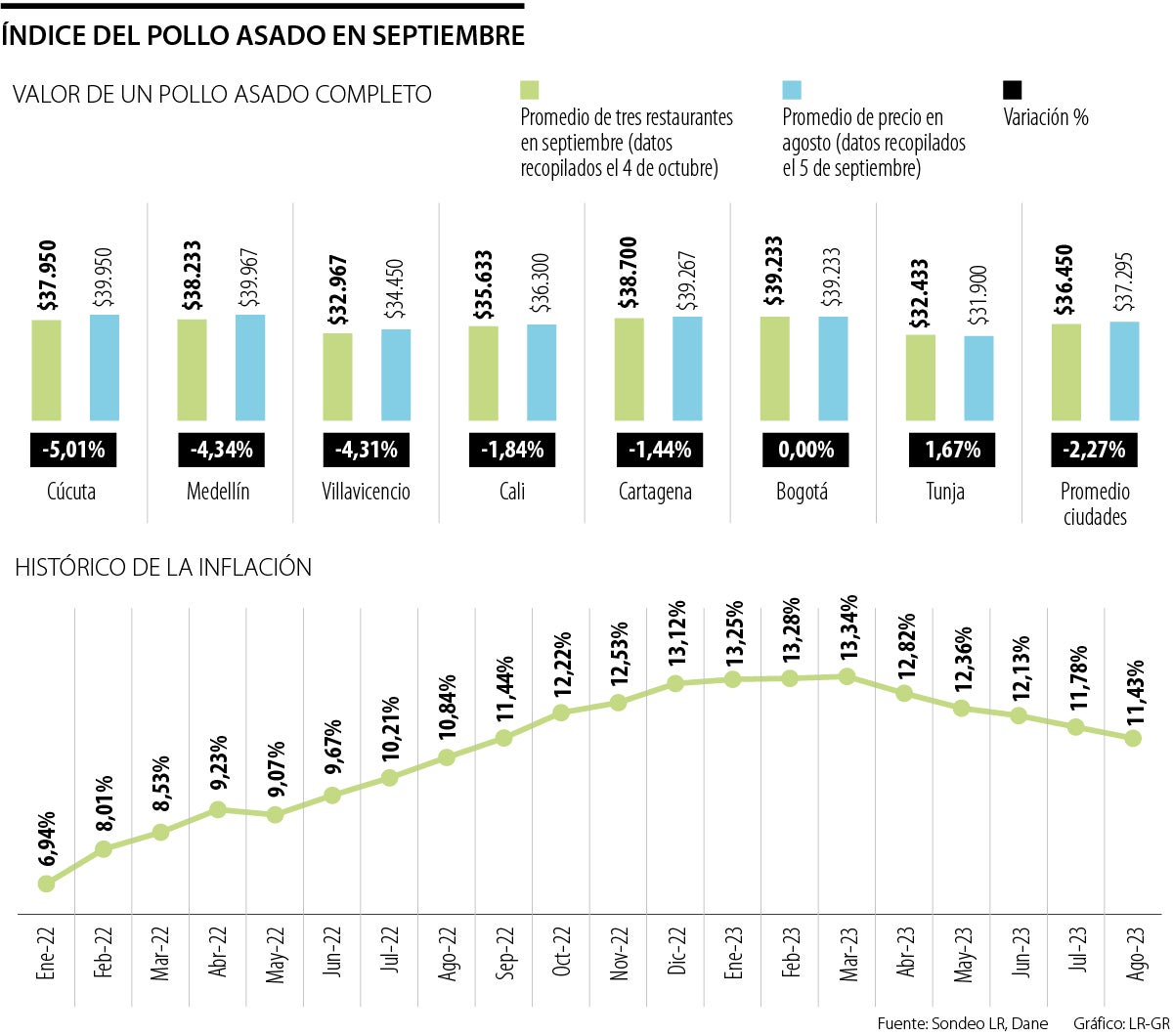El Índice que LR realiza cada mes cayó si se compara contra agosto. El presidente de Fenavi aseguró que el precio del pollo entero en las centrales mayoristas ha caído 6%