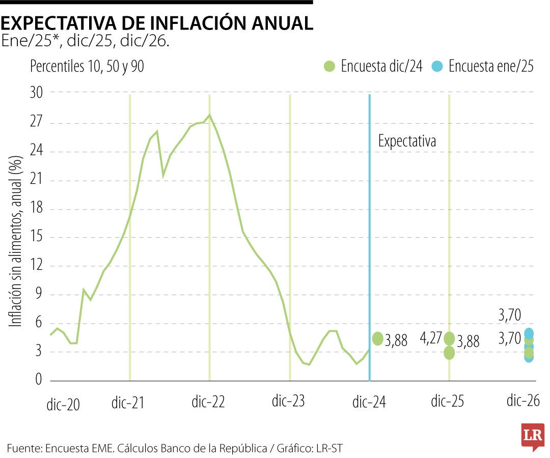 El Banco de la República publicó su encuesta mensual de expectativas y mantuvo que la inflación para 2025 debe estar en 3%, sin embargo, los analistas mantienen otras proyecciones para este año, aunque están por encima de 5%