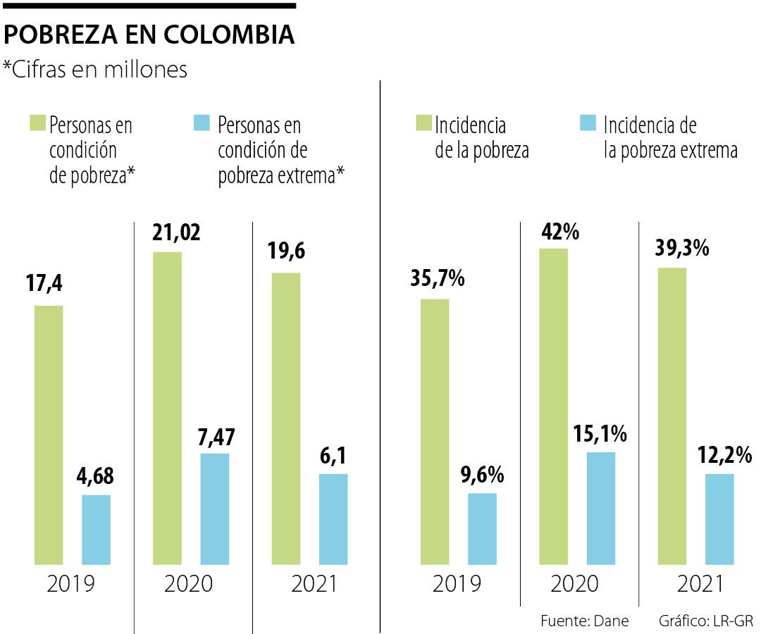 Este anuncio se da en el marco de los resultados de pobreza monetaria que presentó el Dane ayer y que reflejó el impacto positivo de las transferencias sociales en las cifras de 2021. De acuerdo con el ente, durante el segundo año de la pandemia, hubo 19,6 millones de personas en condición de pobreza.