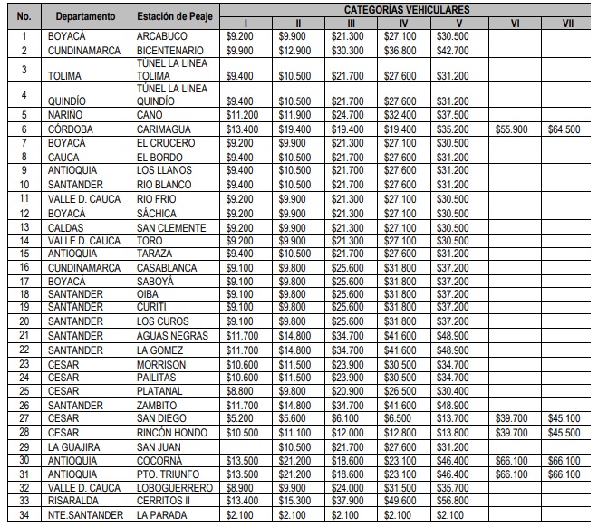Desde hoy y hasta el 15 de enero de 2023 regirán las nuevas tarifas actualizadas por el Instituto Nacional de Vías (Invias). Dicho cambio contempla un aumento de 5,62% en la tarifa de 34 peajes con base en el Índice de Precios al Consumidor (IPC) anunciado por el Departamento Administrativo Nacional de Estadística (Dane) para 2021.