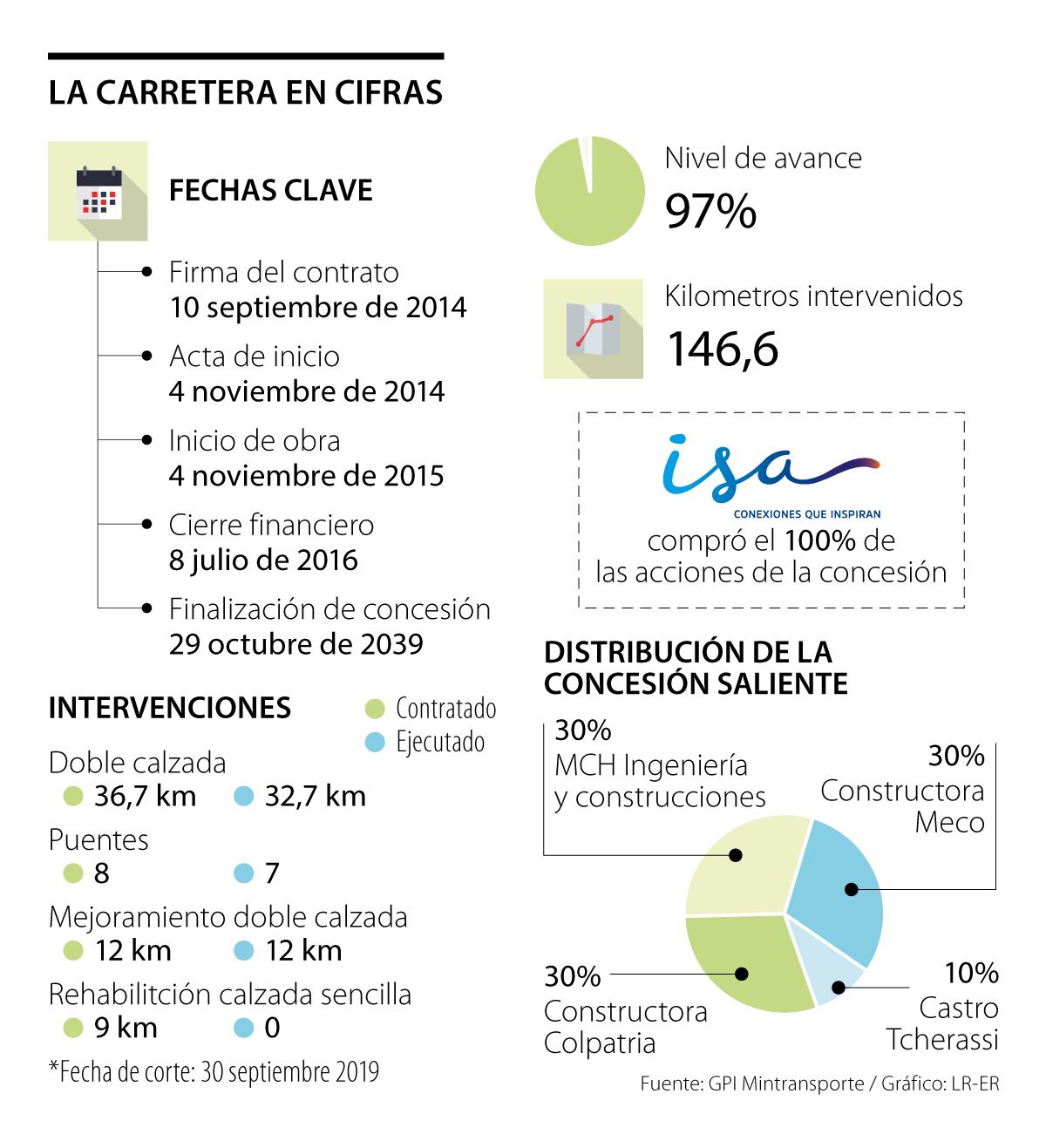 Con este negocio, en 2020, los ingresos operacionales de la compañía quedarían distribuidos así: energía 73%, vías 23% y telecomunicaciones 4%. No obstante, la firma ha manifestado tener interés en seguir ampliando la participación en lo carretero, en Colombia y Perú. Cabe destacar que sus activos a junio sumaban $47 billones. Actualmente el avance de esta 4G es del 97% y es posible que sea inaugurada este mismo año. Además, se calcula que está tasada en $2,2 billones.