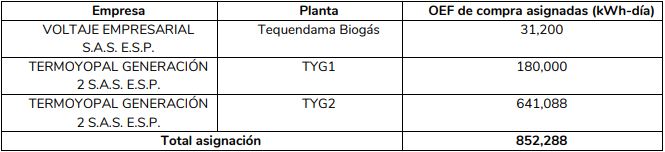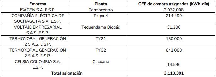 El proceso, que fue auditado por la firma Deloitte, contó con una participación total de 6 recursos de generación, a los cuales se les asignó la totalidad de la energía ofertada.