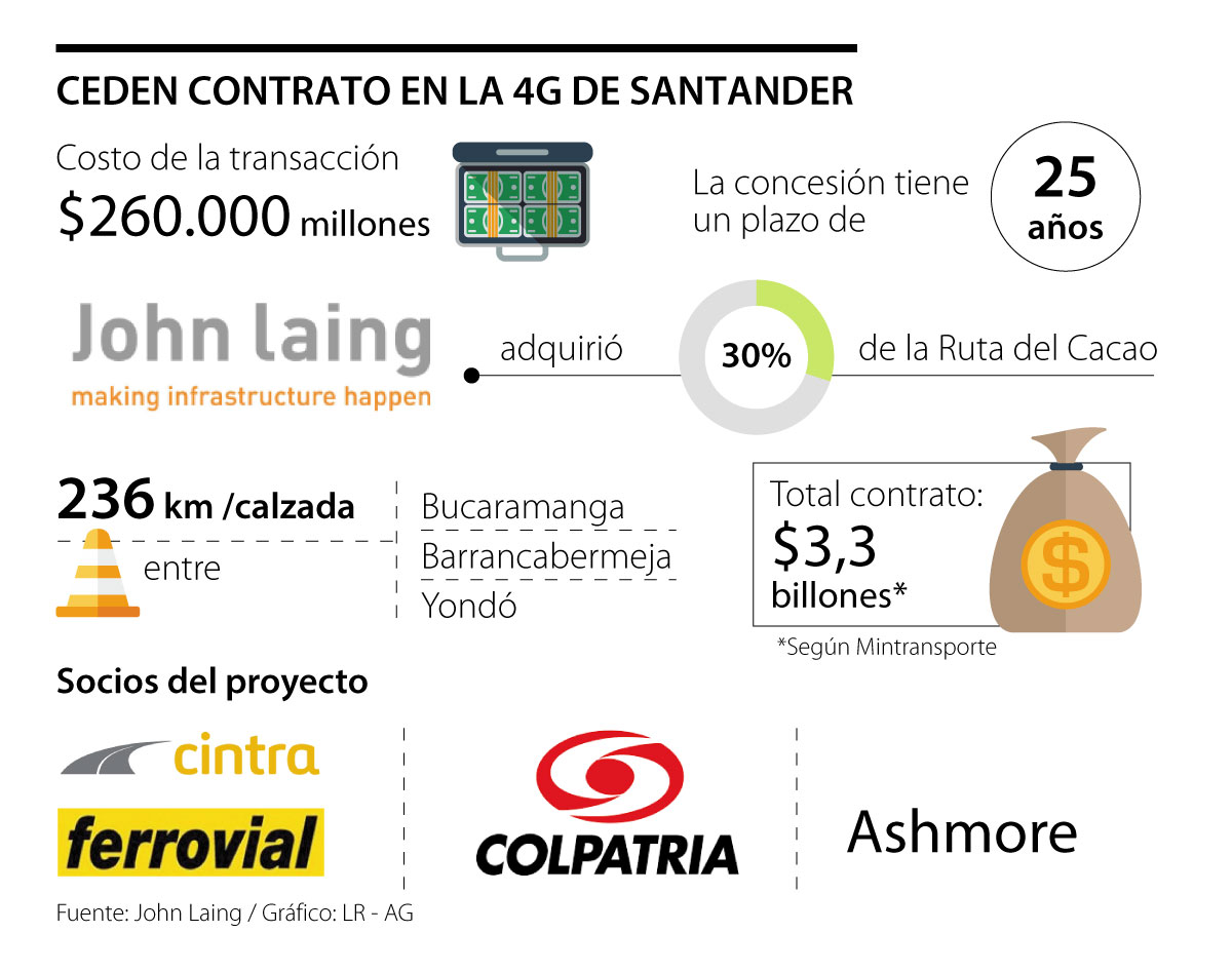 John Laing Group, inversionista global en proyectos de infraestructura y energía renovable, llegó a un acuerdo para adquirir 30% de Ruta del Cacao, una concesión de que tiene la vía de Cuarta Generación (4G) en Santander.