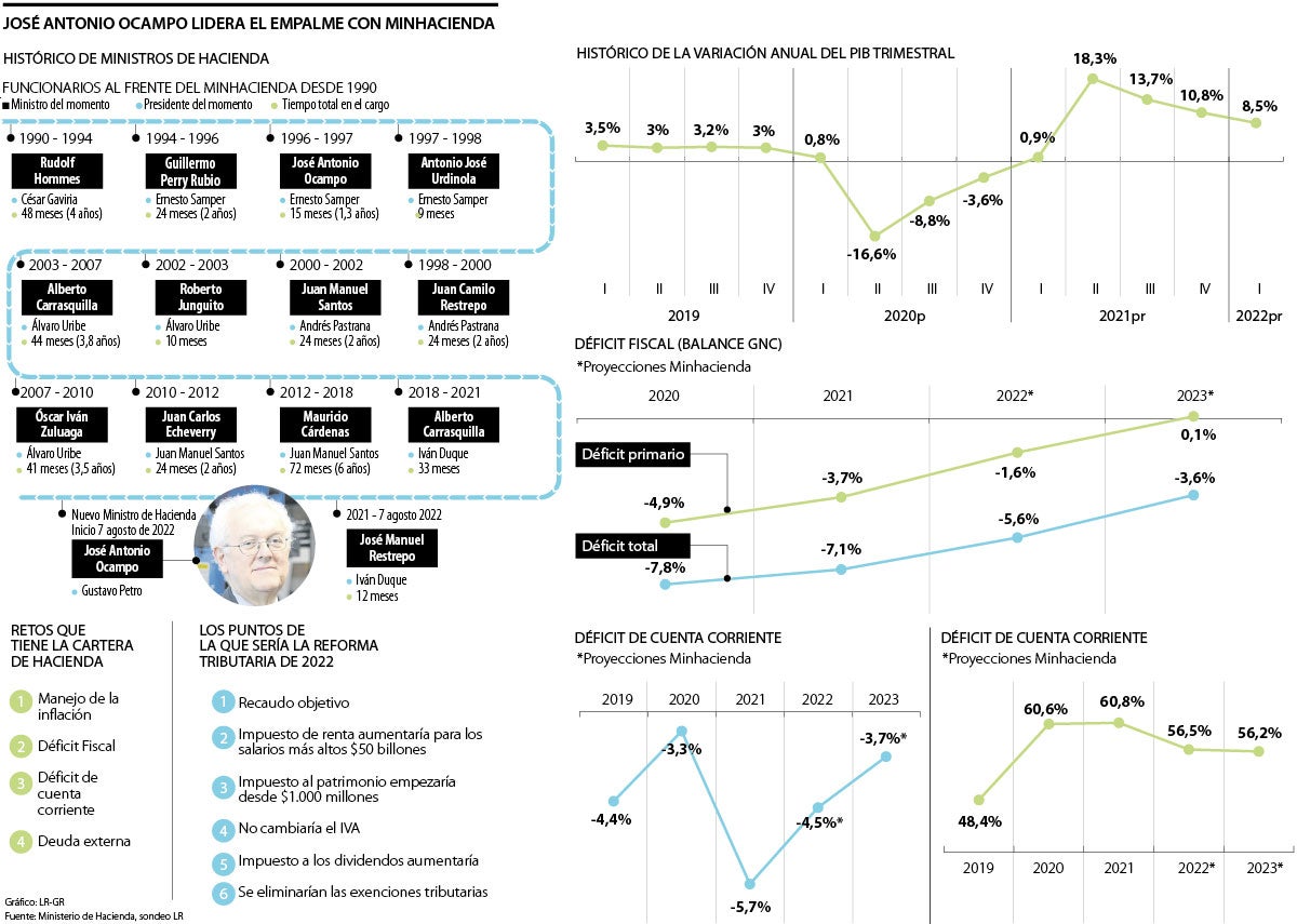 José Antonio Ocampo será el ministro de Hacienda durante el gobierno del presidente electo Gustavo Petro, por al menos 18 meses, tiempo que dura la licencia que entregó la Universidad de Columbia, donde se desempeña como profesor desde hace dos años. El economista aceptó la propuesta del nuevo mandatario para tomar las riendas del país en materia de Hacienda. Acá, Ocampo tendrá grandes desafíos, sobre todo luego del anuncio de Petro sobre una reforma tributaria de más de $50 billones, apuesta que incluso subió a $75 billones.