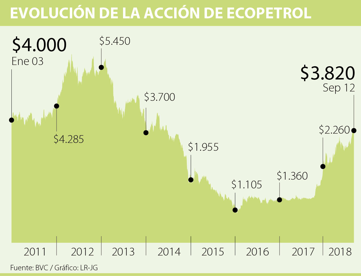 Una mejor confianza de los inversionistas y los trabajos de Ecopetrol para optimizar su eficiencia operativa ha hecho que su acción se recupere. De acuerdo con la Bolsa de Valores de Colombia, la especie tuvo un precio de cierre este miércoles de $3.820, y con eso volvió a estar por encima del precio de su segunda emisión en 2011.