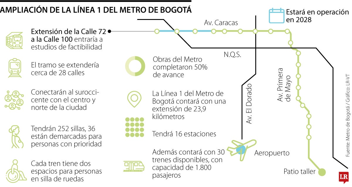 El directivo de la compañía afirmó que la extensión de la Línea 1 descongestionará el nodo de la calle 72; se integrará con la troncal de TransMilenio de la Avenida 68 en la calle 100 y en la avenida 1 de Mayo; y con el proyecto Regiotram del norte en la calle 94 y la Avenida NQS.