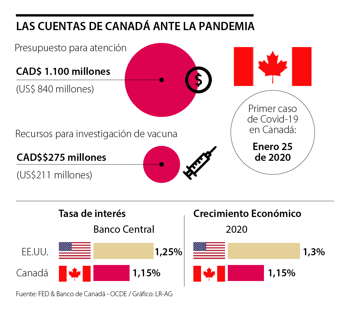 En materia de política pública Canadá emprendió una tarea que podría marcar la hoja de ruta para otros países. El paquete de US$840 millones anunciado esta semana por el gobierno de Justin Trudeau está enfocado a dos frentes. El primero es la atención en salud, que incluye US$211 millones para apoyar la búsqueda de una vacuna contra el virus.