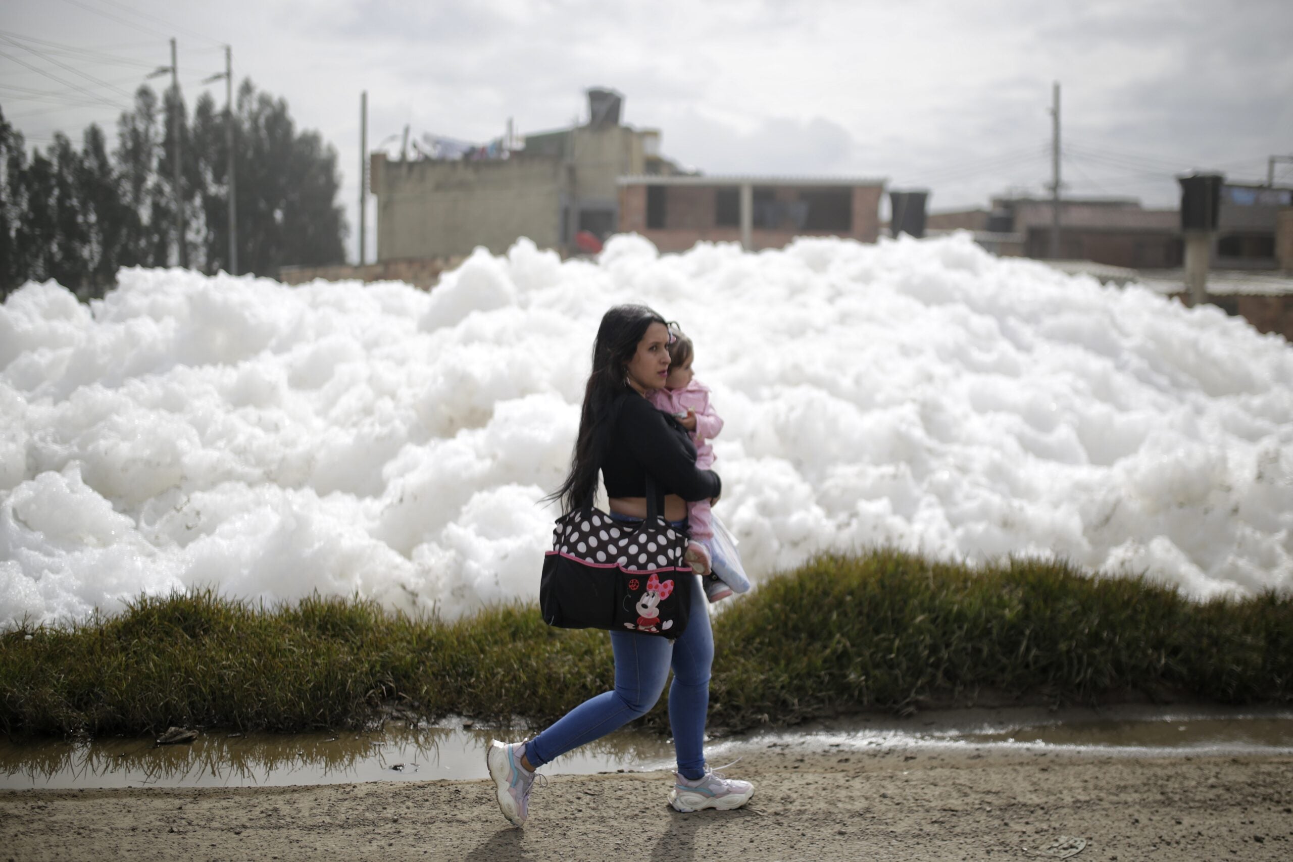 Foto: Mosquera. 27 de Abril del 2022. Habitantes del barrio Los Puentes del municipio de Mosquera, Cundinamarca, están viviendo una difícil situación de saneamiento que han soportado muchos años, pero que se ha venido agravando por las inclemencias del invierno, las mismas que por estos días azotan a gran parte del país. Los habitantes denuncian que el Rio Bojacá está dejando a su paso una espuma que ha invadido sus viviendas y vías, afectando su salud y su diario vivir. (Colprensa-Sergio Acero)