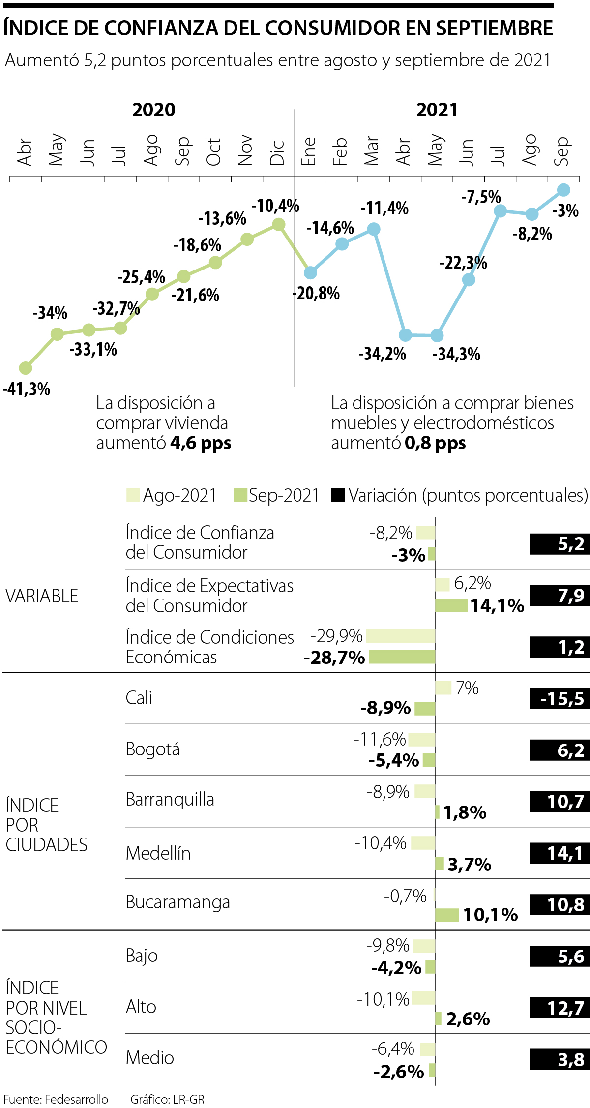 “Lo que más aumentó en el mes de septiembre fue el indicador de expectativas, hay un marcado optimismo en términos de la recuperación de la actividad económica y de las condiciones de los hogares para los próximos meses”, agregó Mejía.