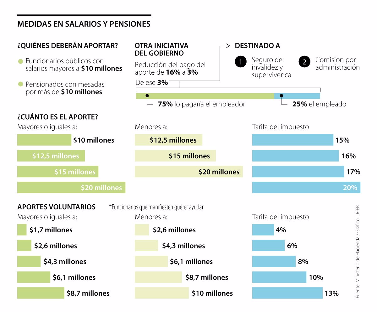 La medida que quedó en el Decreto 568, aplicaba para más de 15.000 jubilados que reciben $10 millones al mes o están arriba de ese nivel; y por el lado de los funcionarios públicos, según reportes del Departamento Administrativo de la Función Pública, de los 1,2 millones de puestos que genera el Estado, solo 2% entraban en el decreto, es decir, 21.201 trabajadores.