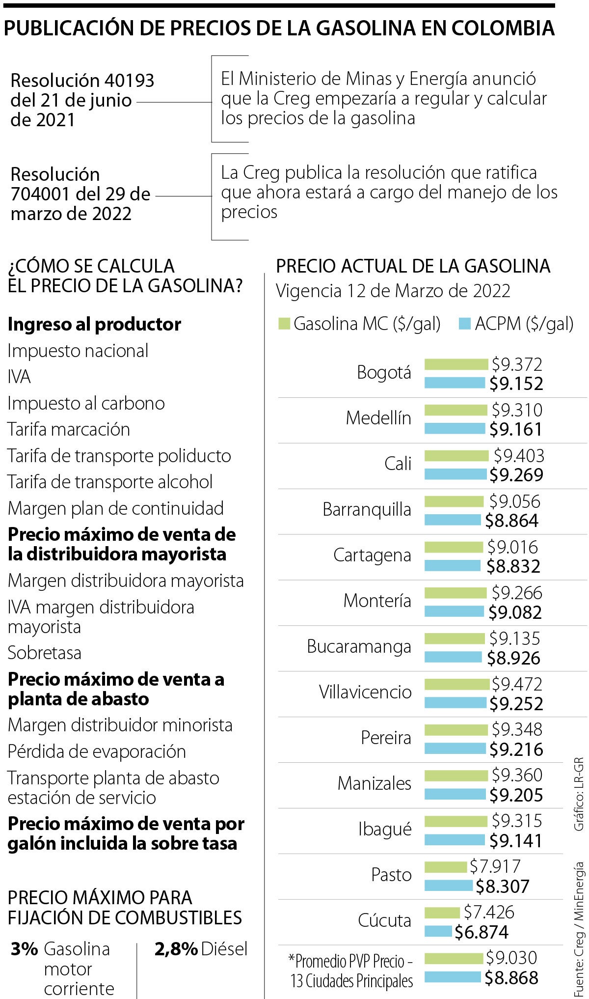 Dicha decisión ya había sido contemplada previamente no solo en el Plan Nacional Desarrollo, sino que se formalizó a través de la resolución 40193 del pasado 21 de junio de 2021, donde el Ministerio de Minas y Energía había anunciado que la Creg empezaría a regular y calcular los precios de la gasolina en el país, una tarea que hasta el momento estaba a su cargo.