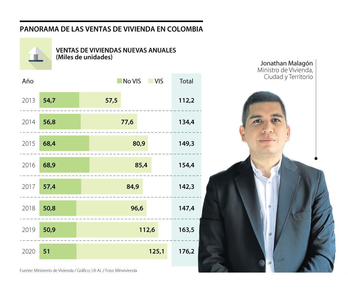 En entrevista con LR, el ministro de Vivienda, Ciudad y Territorio, Jonathan Malagón destacó que 2020 fue un año récord en ventas para el sector y señaló que en todo el mundo después de la crisis del covid-19 ha aumentado la disposición de las familias a comprar vivienda.