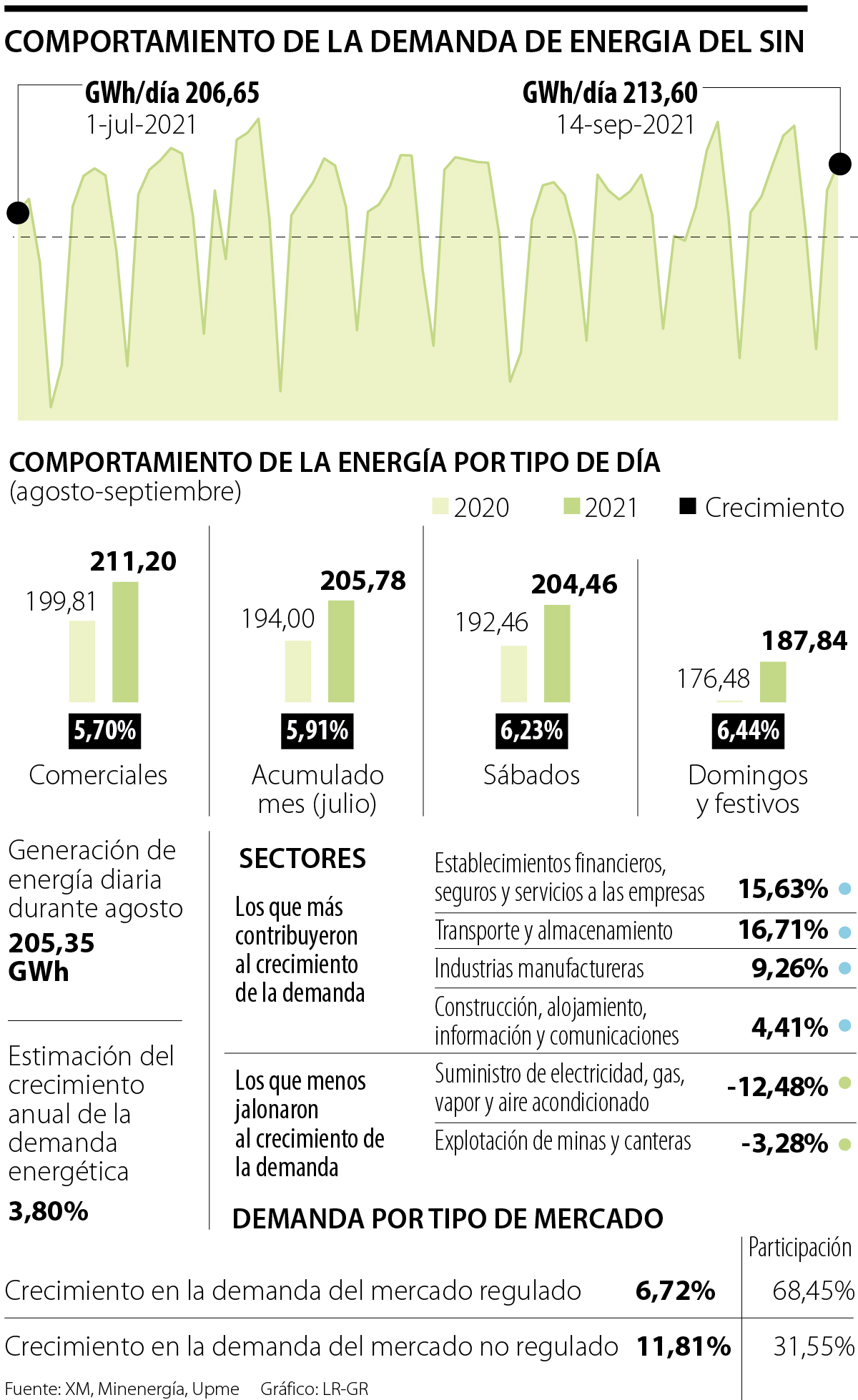 Hoy la demanda continúa en ascenso, donde a corte del 14 de septiembre, aún se mantenía por encima de los 210 GWh/día.