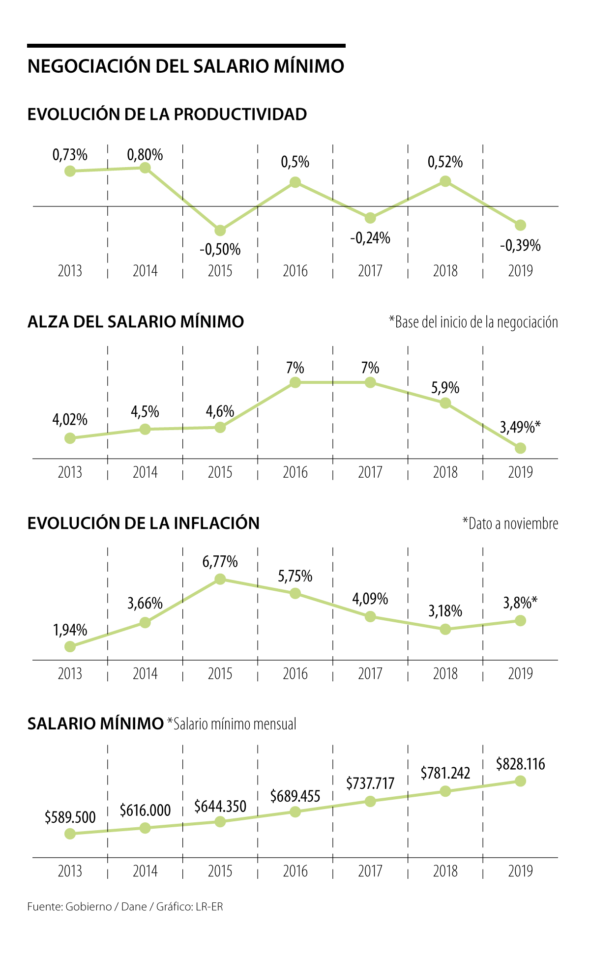 La productividad total de -0,39%, que reveló ayer el Dane en el marco de la primera reunión de la mesa de concertación salarial, fue uno de los motivos de discordia entre los actores que participan en los encuentros que definirán el alza del salario mínimo para 2020.