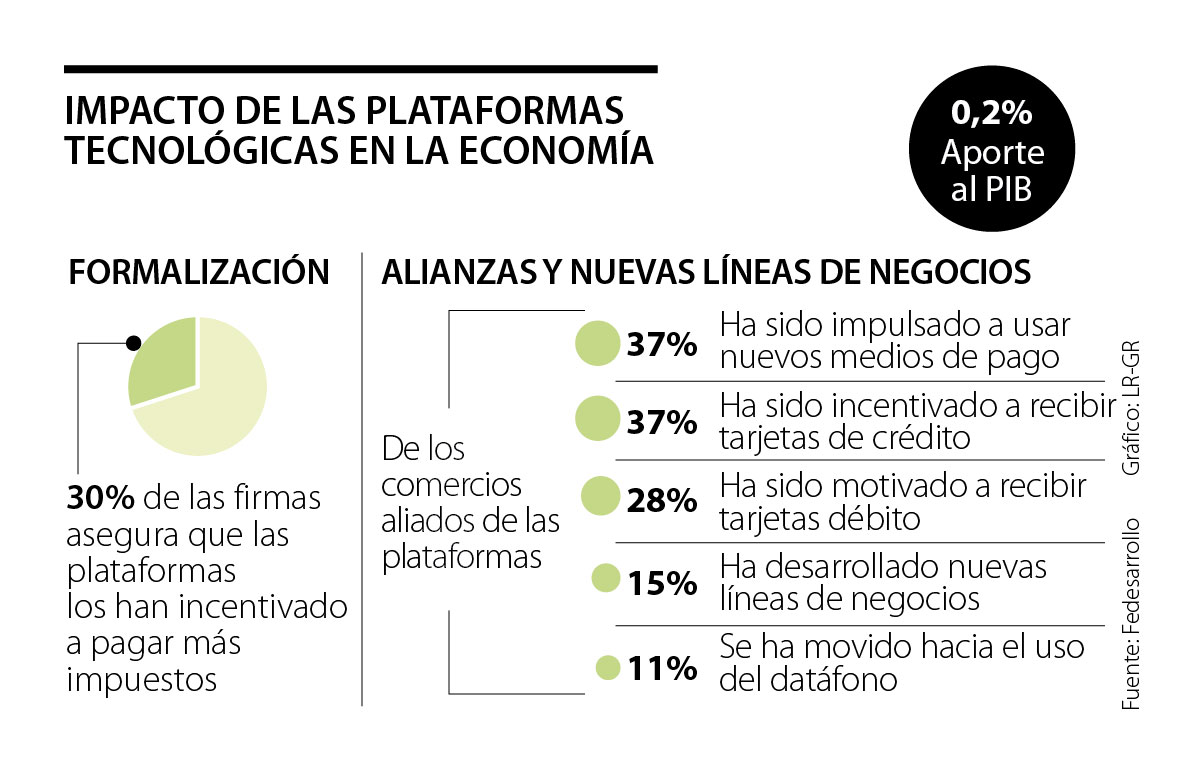 De acuerdo con un análisis realizado por Fedesarrollo, la participación de las plataformas digitales en el PIB nacional oscila entre 0,2% y 0,3% del total, sin embargo, advierte que esta es una estimación conservadora que depende de la definición de los sectores.