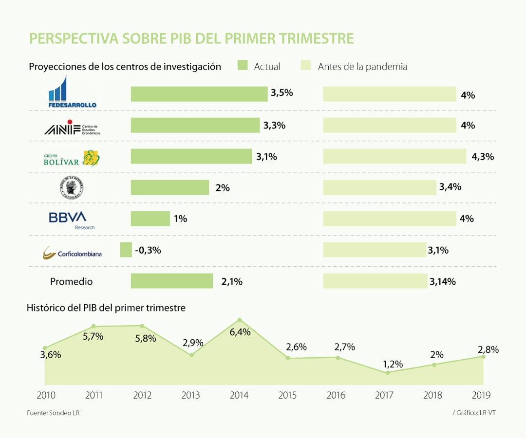A nivel general el desempeño del PIB anual está explicado por una reducción en 170 puntos básicos del crecimiento del valor agregado, el cual pasó de subir 2,8% en el primer trimestre de 2019, a 1,1% en 2020.