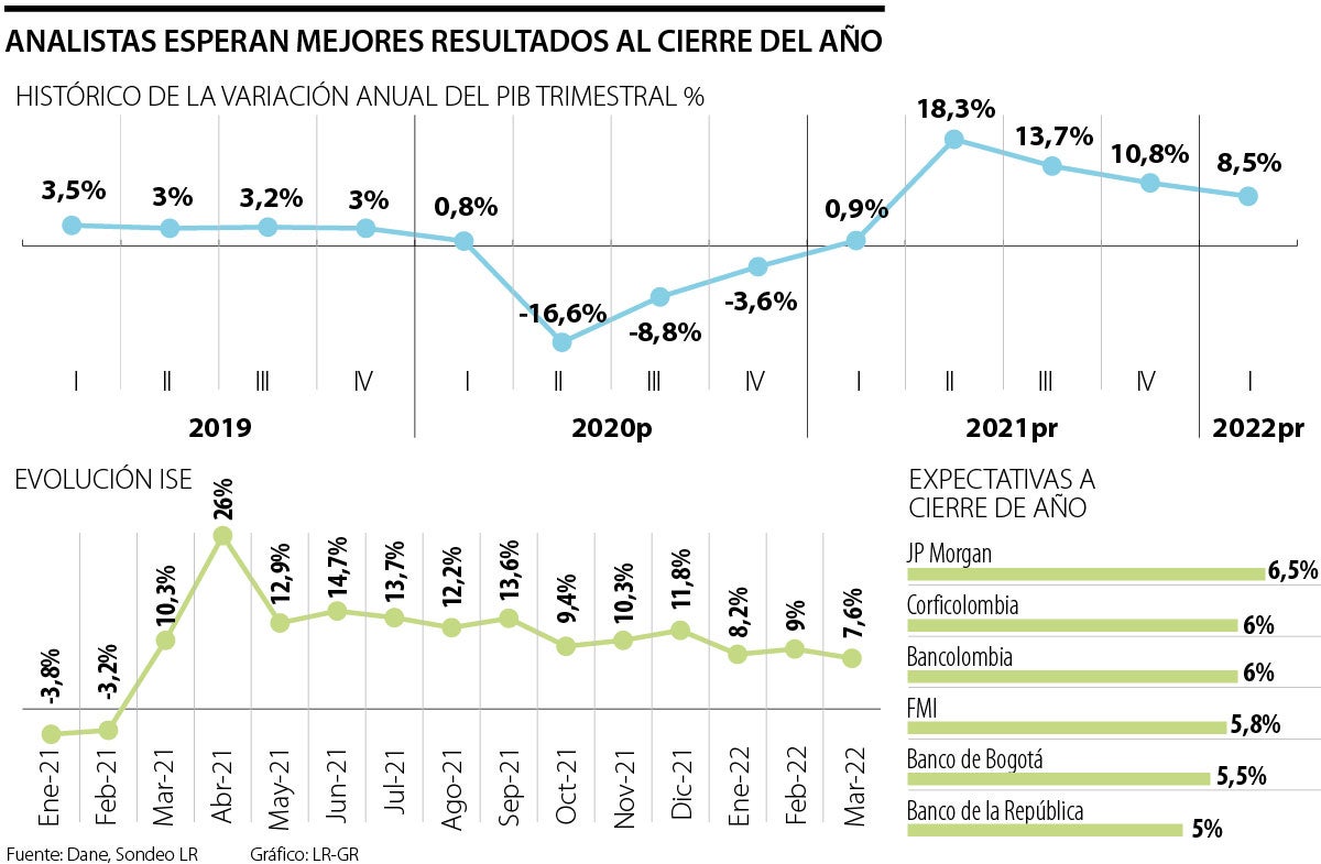 Este buen resultado ha llevado a los analistas a considerar que a final de año el PIB puede estar por encima de las proyecciones iniciales. “Estamos convencidos de que la economía va a crecer durante todo el año por encima de 5%, los analistas e incluso el Gobierno consideran que la economía puede crecer por encima de 6%, comienza a verse una tendencia relevante sobre esta última expectativa”, afirmó Sergio Olarte, economista principal de Scotiabank Colpatria.