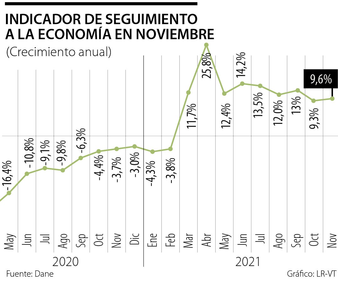 Con estos resultados, el dato de actividad de diciembre deberá ser de por lo menos 8,2% para que se cumpla la estimación del Gobierno frente al PIB de 2021 (9,7%), de acuerdo con la estimación del Banco de Bogotá.