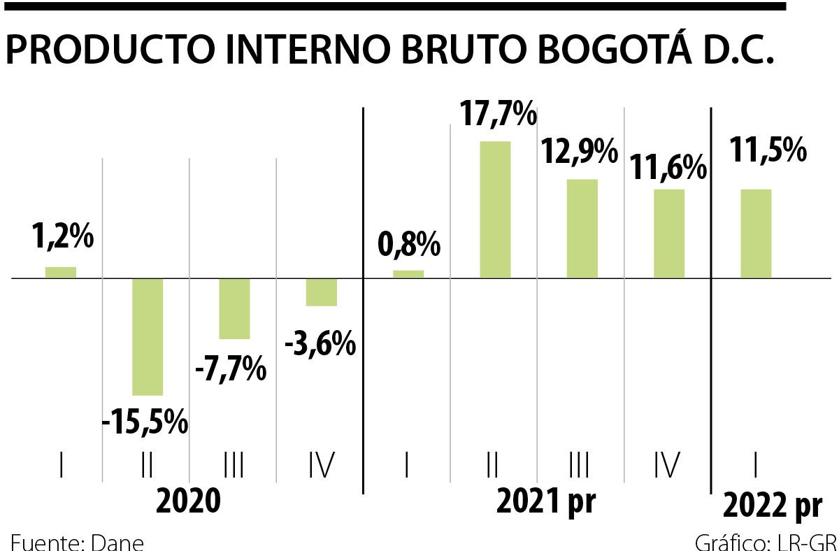 En el primer trimestre de 2022 el Producto Interno Bruto (PIB), creció 11,5% en Bogotá respecto al mismo periodo de 2021, según el último informe del Dane. Las actividades económicas que más contribuyen a la dinámica del valor agregado son: