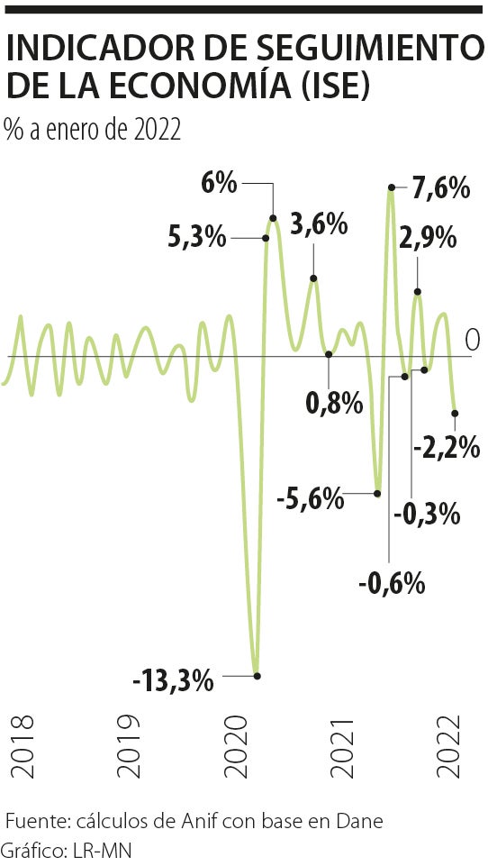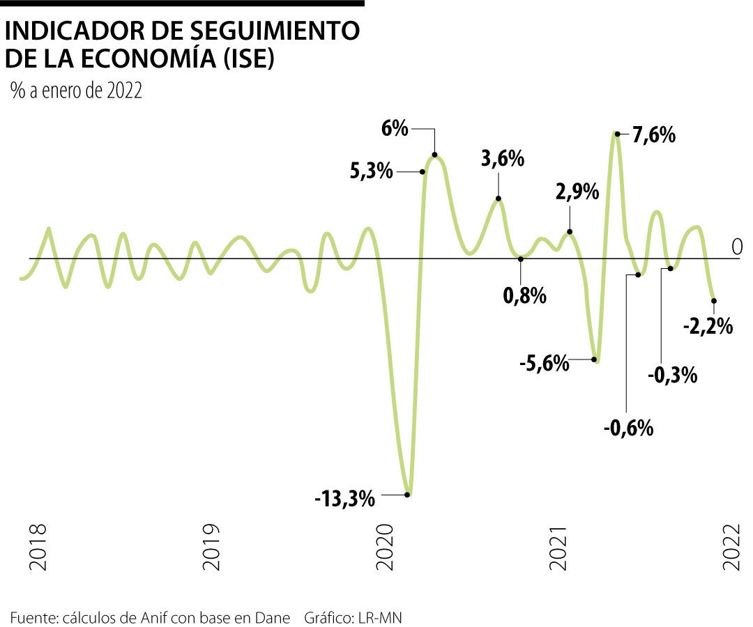 Con base en la publicación del Dane sobre los resultados del Indicador de Seguimiento a la Economía (ISE) para enero, la Asociación Nacional de Instituciones Financieras (Anif) recordó que, durante el primer mes de 2022, el ISE tuvo un crecimiento de 7,8% respecto al mismo periodo del año anterior.