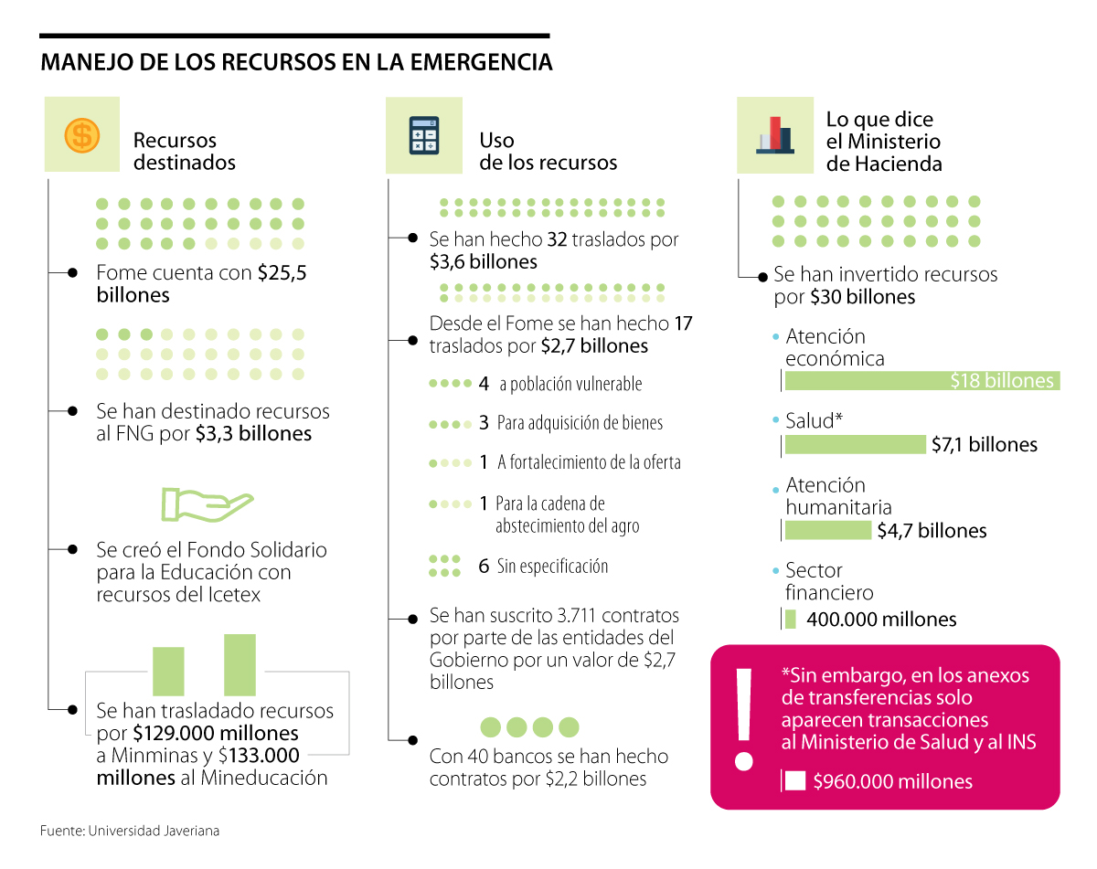 “Lo que nos indican en el Ministerio de Hacienda es que ellos tienen la página y en el apartado de covid-19 están todas las resoluciones en las que se hacen traslados a distintas entidades del Estado como respuesta a la pandemia, no solo del Fome, sino en general traslados para abordar la pandemia”, explicó Luis Carlos Reyes, director del Observatorio Fiscal de la Universidad Javeriana.