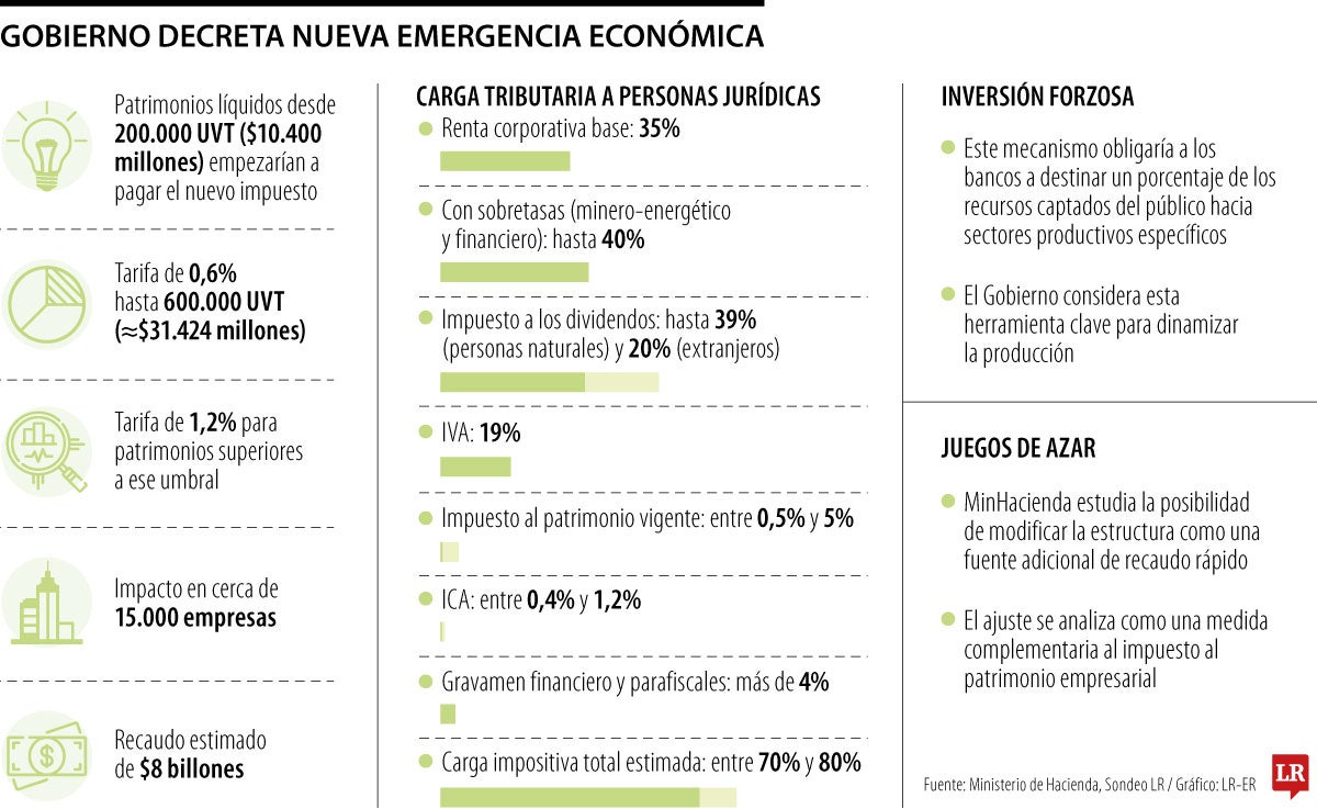 Sin embargo, el presidente Gustavo Petro afirmó que el eje central de la estrategia fiscal será un impuesto temporal al patrimonio de las compañías con mayor capacidad económica. Según indicó, solo estarán obligadas a tributar las empresas con patrimonios superiores a $10.000 millones.